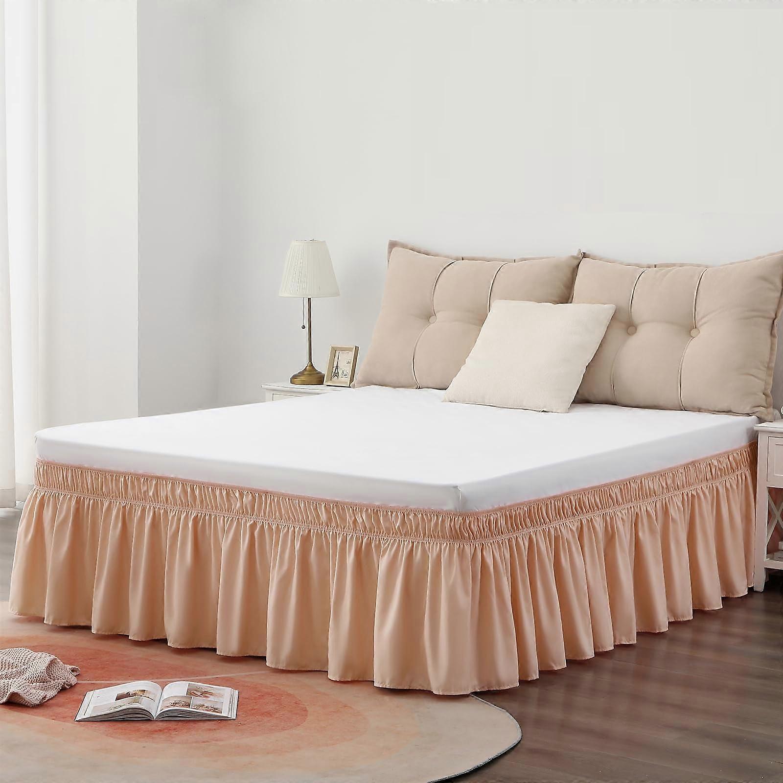 Light Orange Queen Bed Skirt, 15in Drop, Soft Ruffled Dust Ruffle, Easy-Install, Durable, 1 Piece
