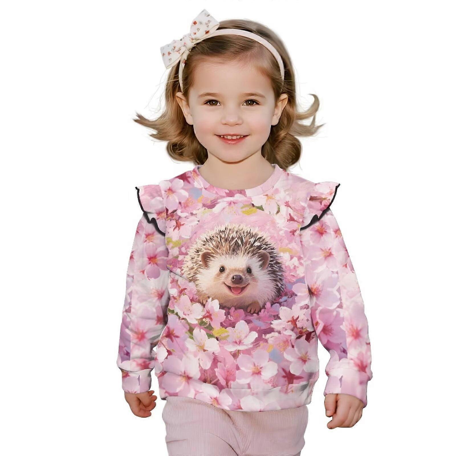 Girls Sweatshirts 2-3T Ruffle Pullover Sweater Long Sleeve Crewneck Cherry Blossom Hedgehog Shirts Top Toddler Sweatshirt Tops Fall Fashion