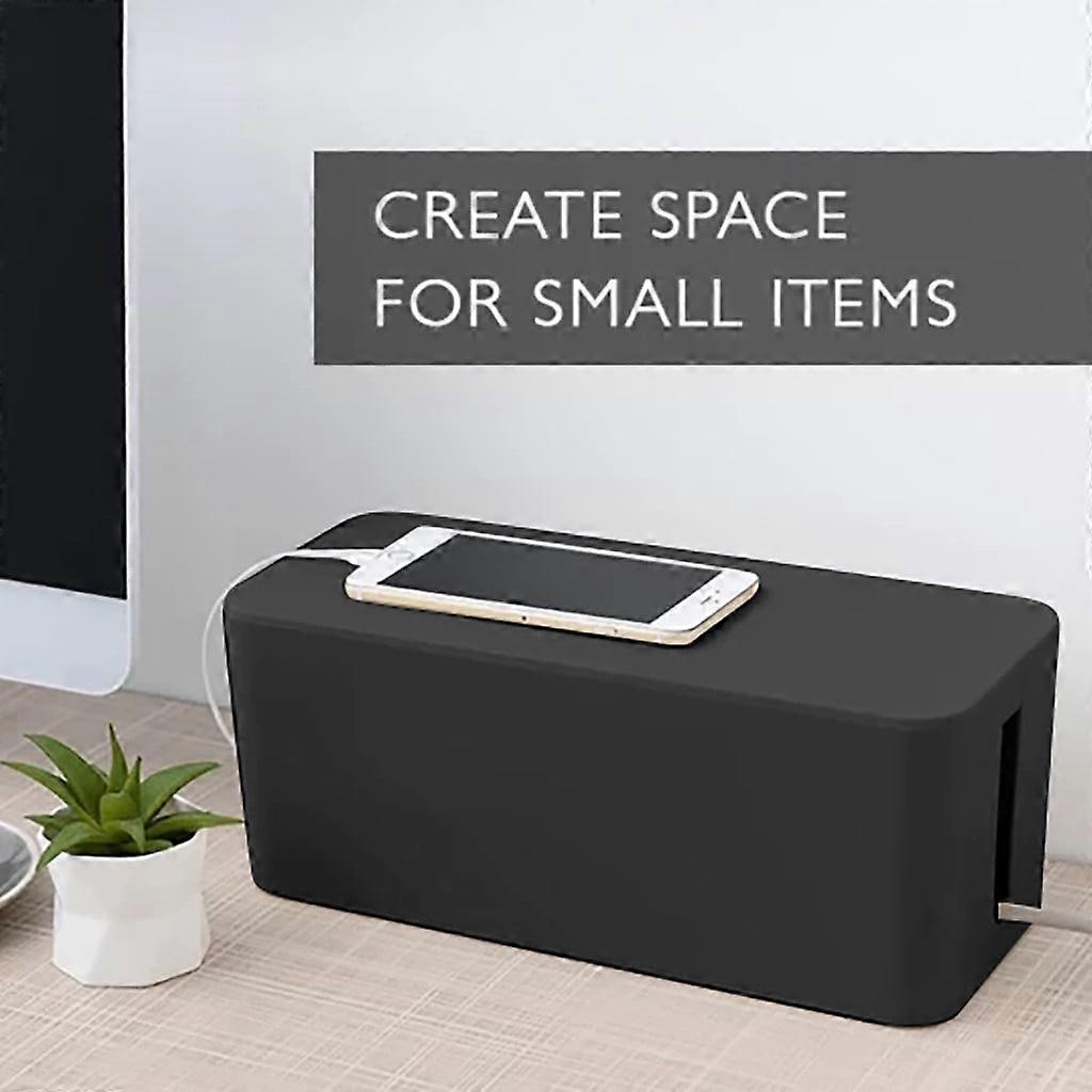 Large Cable Management Box to Hide Power Strip Under Desk, with Clips & Reusable Ties – Compatible with Standard Power Strips