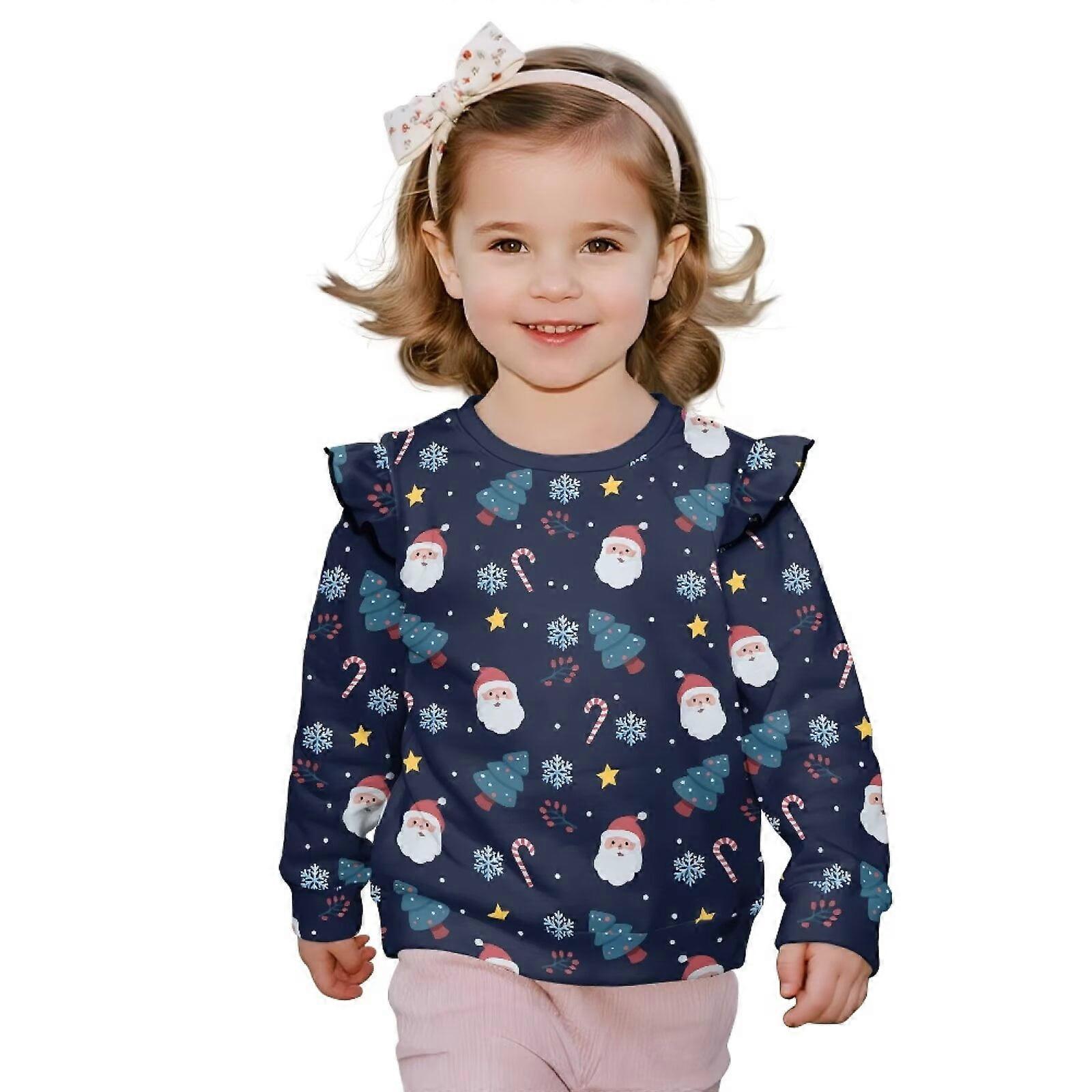 Girls' Christmas Ruffle Long Sleeve Pullover Sweatshirt, Soft & Lightweight, Compatible with Kids Sizes 2-3