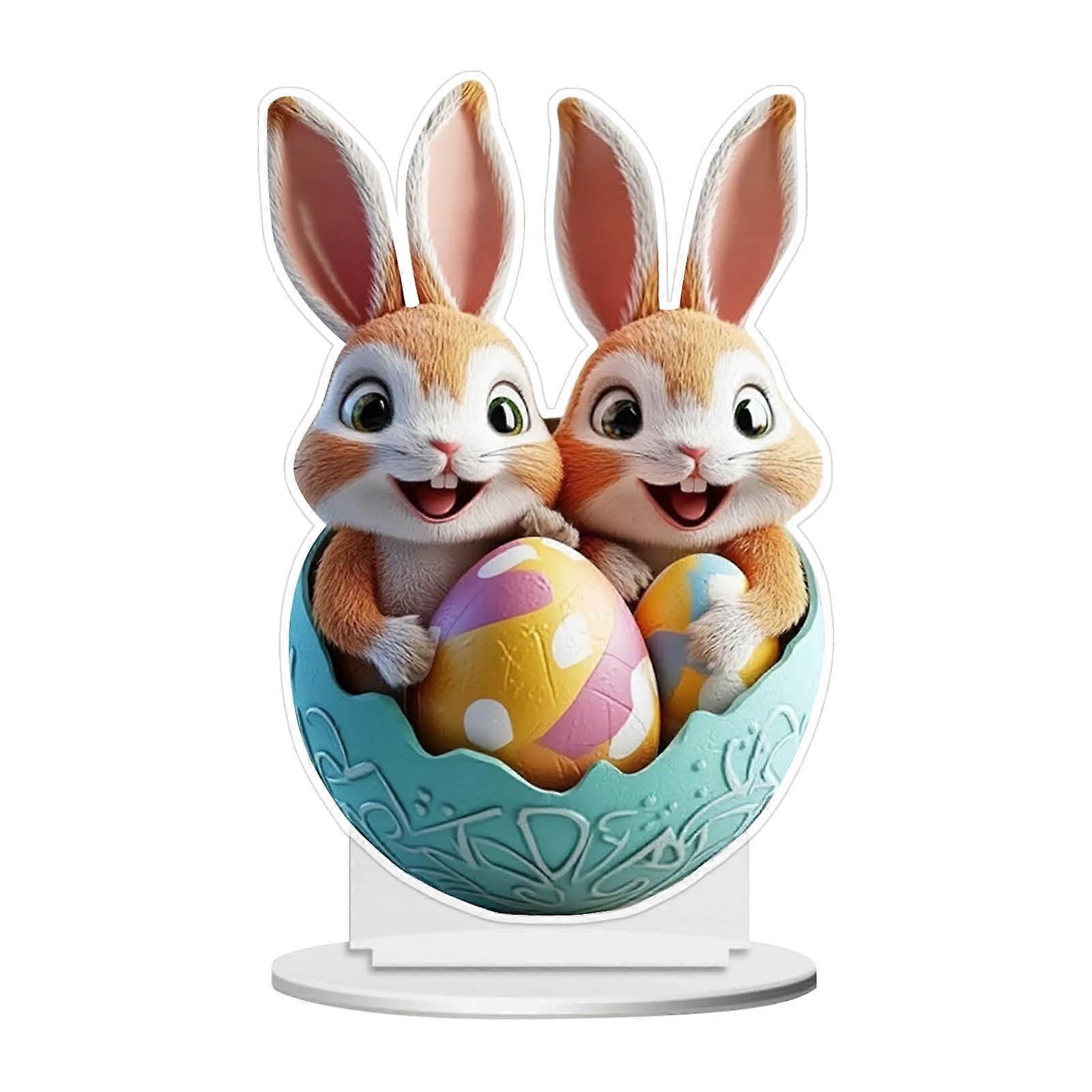 1PC Easter Acrylic Ornament: Cute Rabbit & Egg Design, 8" Flat Table Centerpiece – Compatible with Easter Theme Decor