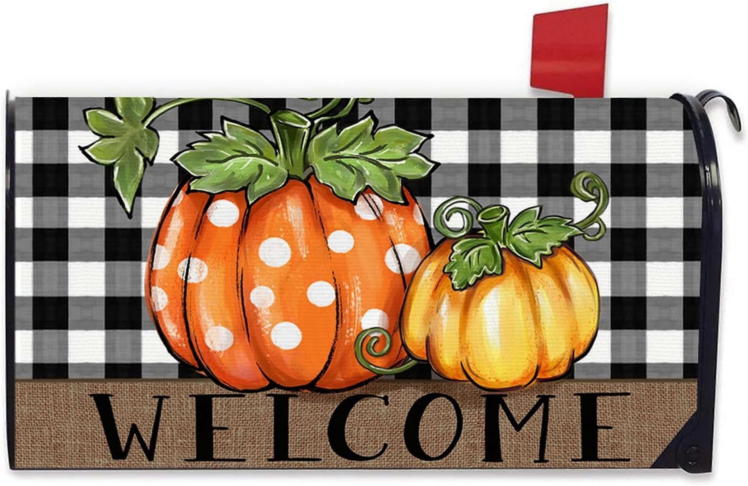 Fall Pumpkin Mailbox Cover, 21x18", Magnetic, Buffalo Plaid & Polka Dot, Thanksgiving Farmhouse Outdoor Decor