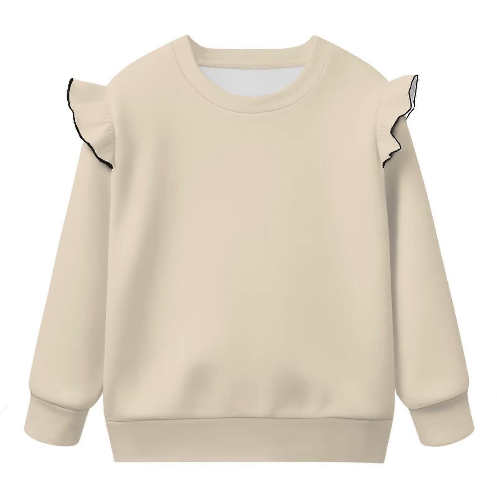 Toddler Sweatshirt Girls Ruffled Shoulder Long Sleeve Beige Sweater Crewneck Pullover Tops for Playtime & Outings (1T-2T)