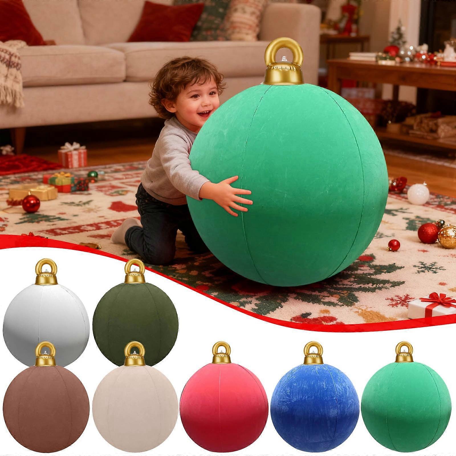 15.7" Inflatable Velvet Christmas Balls – Red/Green/White/Blue, Flocked Outdoor Yard Decor, Large Blow-Up Ornaments