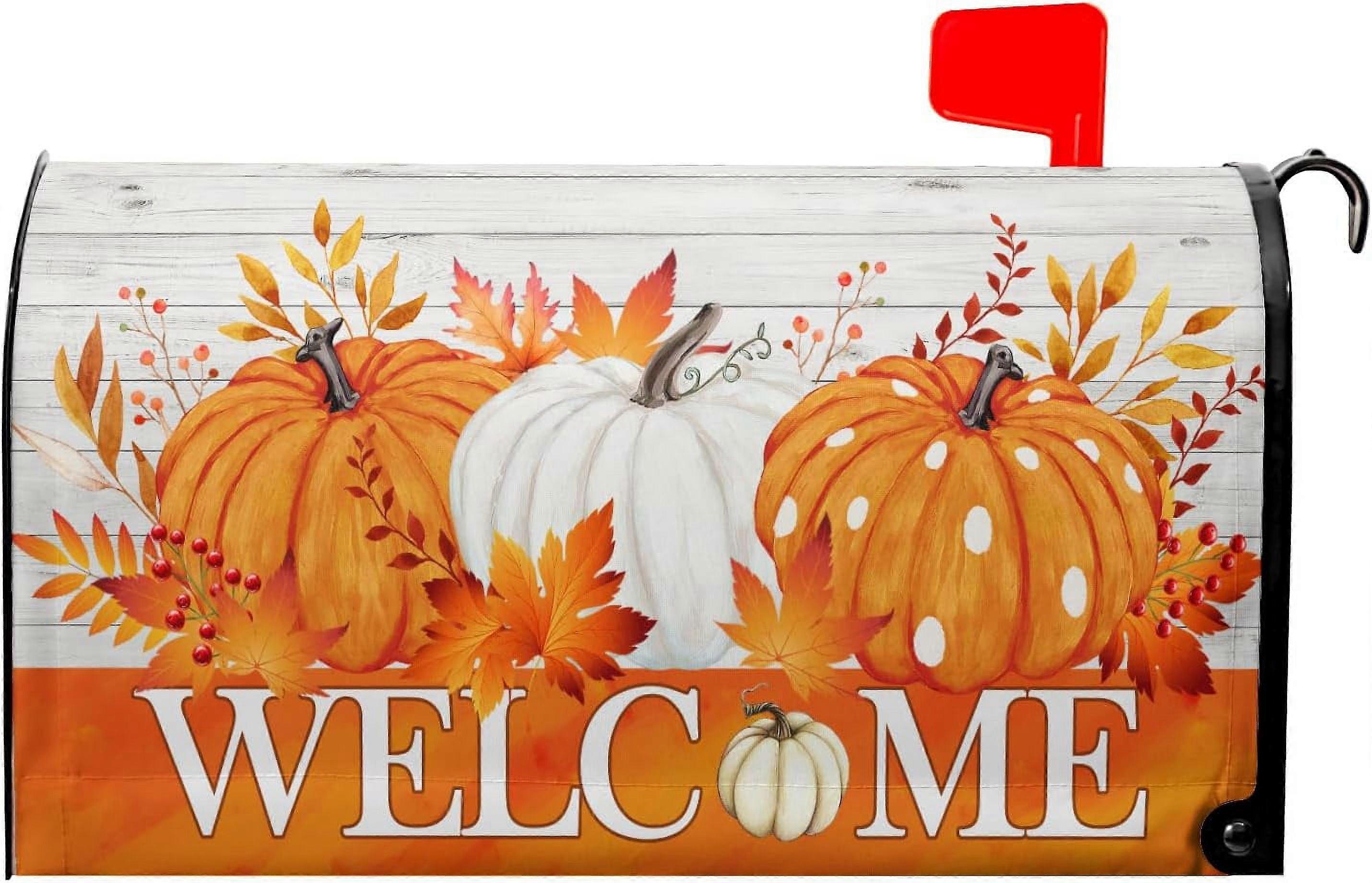 Autumn Orange Pumpkin Mailbox Cover, Magnetic Fall Leaves Decor, Compatible with Standard 25.5"x21" Mailboxes