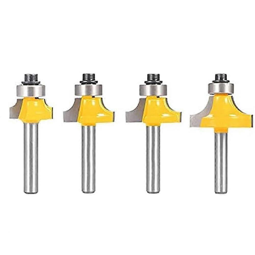 4Pcs 6.35mm Shank Router Bits Set Corner Round Over High quality Alloy Corner Rounding Milling Cutter With Bearing For Wood Woodworking Tool