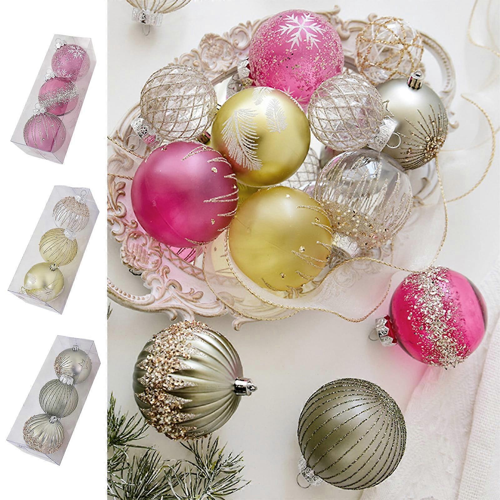 3pcs Pink Glitter Christmas Balls with Silver Cap & Snowflake, Shatterproof Tree Ornaments – Compatible with 2025 Trend Collection