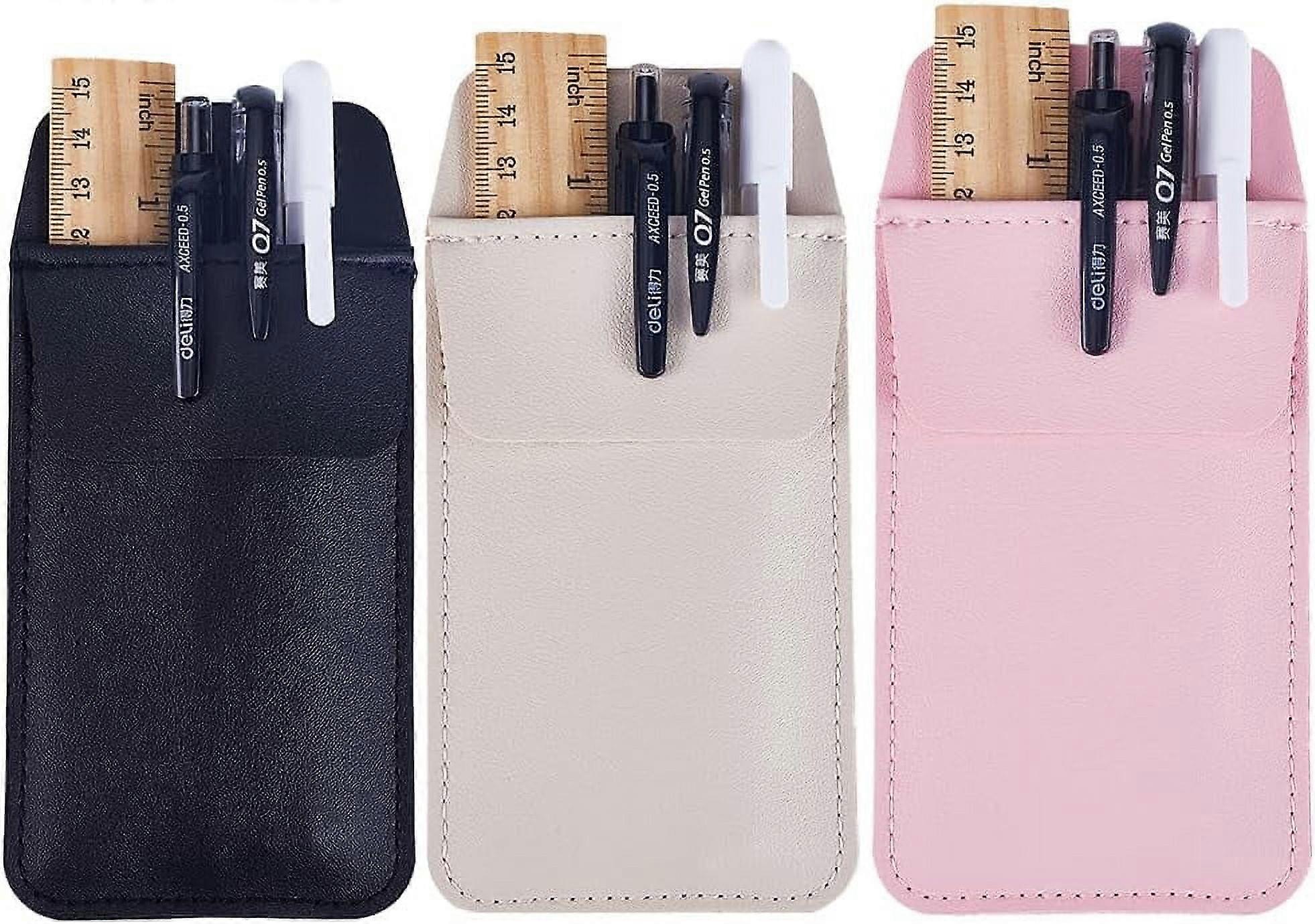 3PCS Leather Pen Pouch Holder Organizer for Shirts/Coats/Pants – Compatible with Pens, Pencils, Pointers, Cards – Pink/Black/Beige