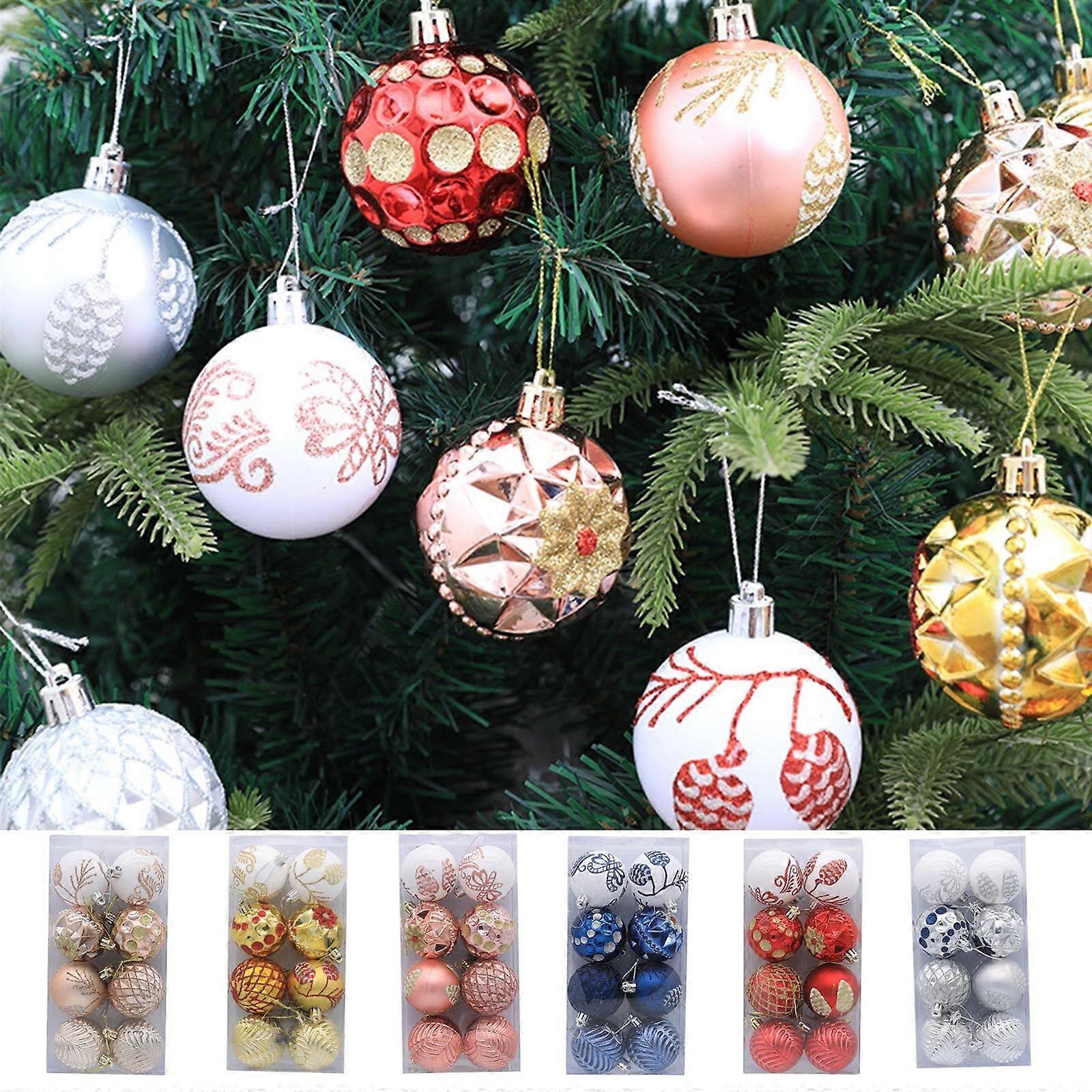 Christmas Balls, 8pcs Gold and White Multi-Pattern Painted Ornaments Set Decorative Hanging Balls for Christmas Tree Holiday Party Home Decor 2025