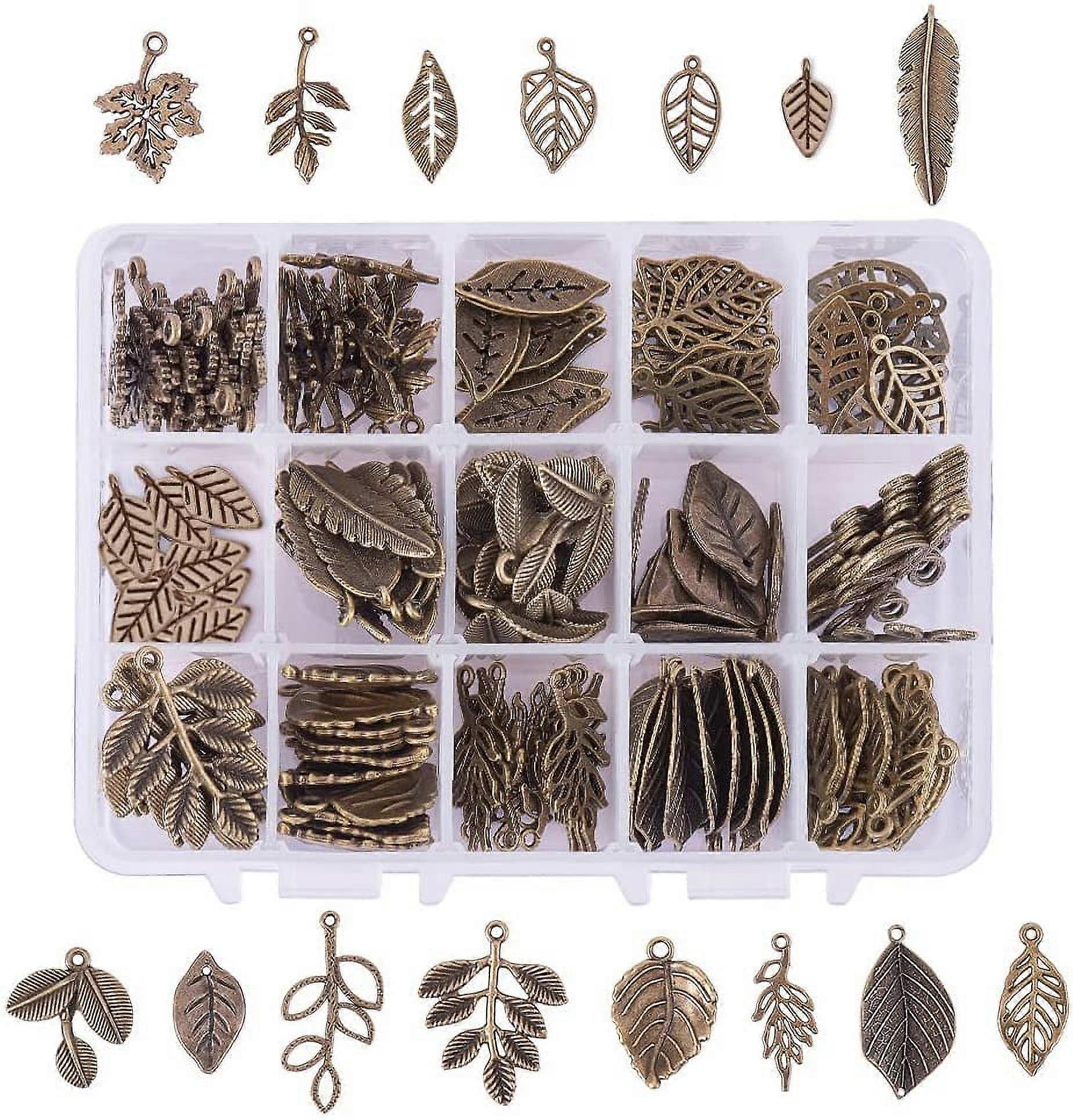 150pcs 15 Styles Tree Leaf Charms, Antique Bronze Metal Alloy Dangle Charms for Earrings, Bracelets, Necklaces, Keychains – Compatible with Jewelry