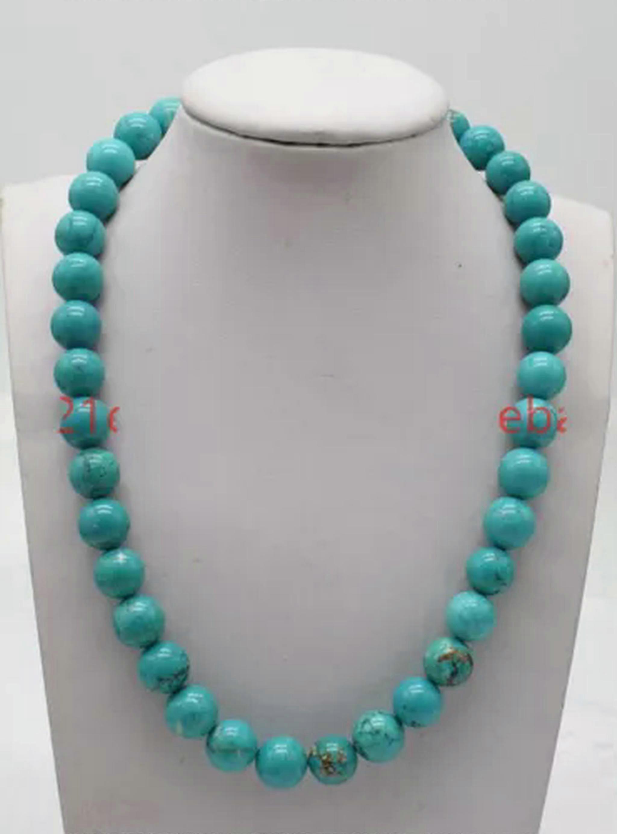 Pretty 6/8/10/12mm Natural Multicolor Gemstone Round Beads Necklace 18" AAA+-10mm-Blue Turquoise