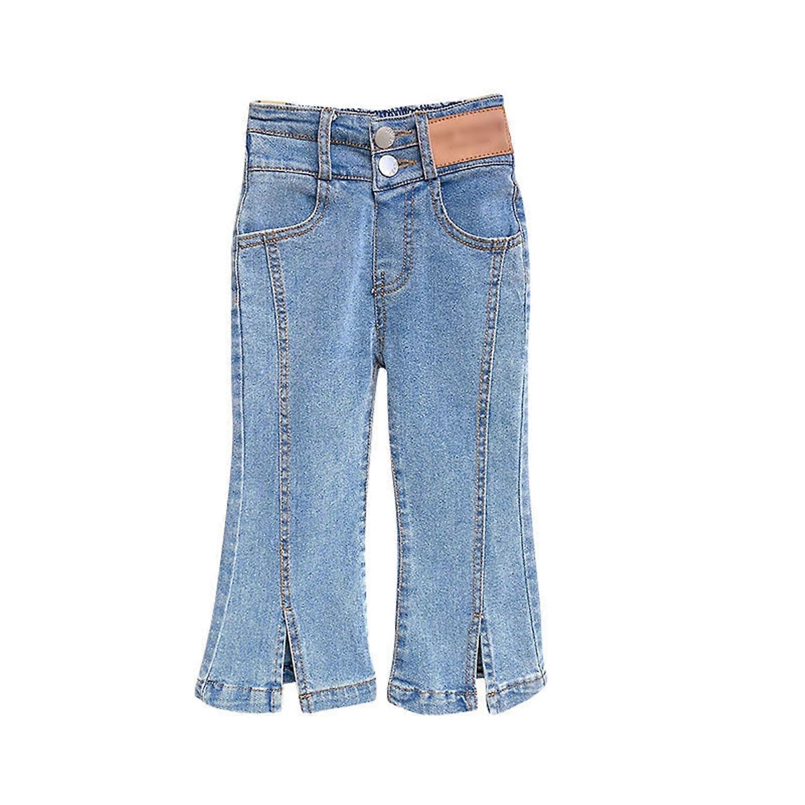 Flare Jeans for Toddler Button Waist Girls Denim Pants Boys Vintage Trousers with Pockets(3-4 Years,Blue)