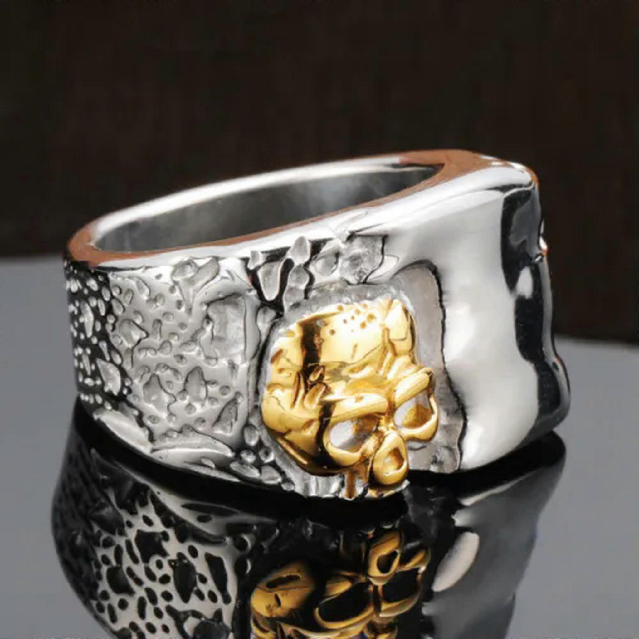 Men's Domineering Gothic Skull Signet Ring Stainless Steel Biker Punk Skull Ring-13