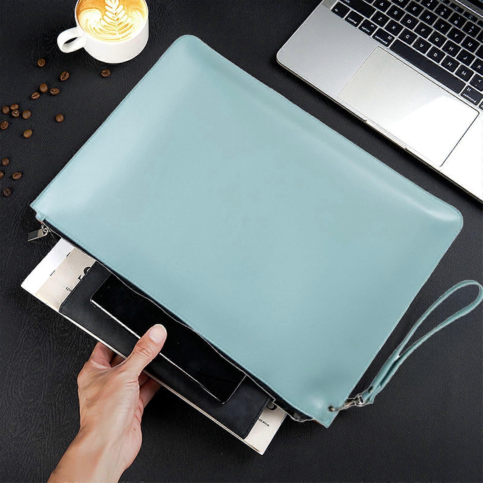 Waterproof Leather A4 Document Bag Briefcase – Zippered Folder, Detachable Handle, 14.57x11.02in, Office/Business/Travel – Blue/Brown/Green