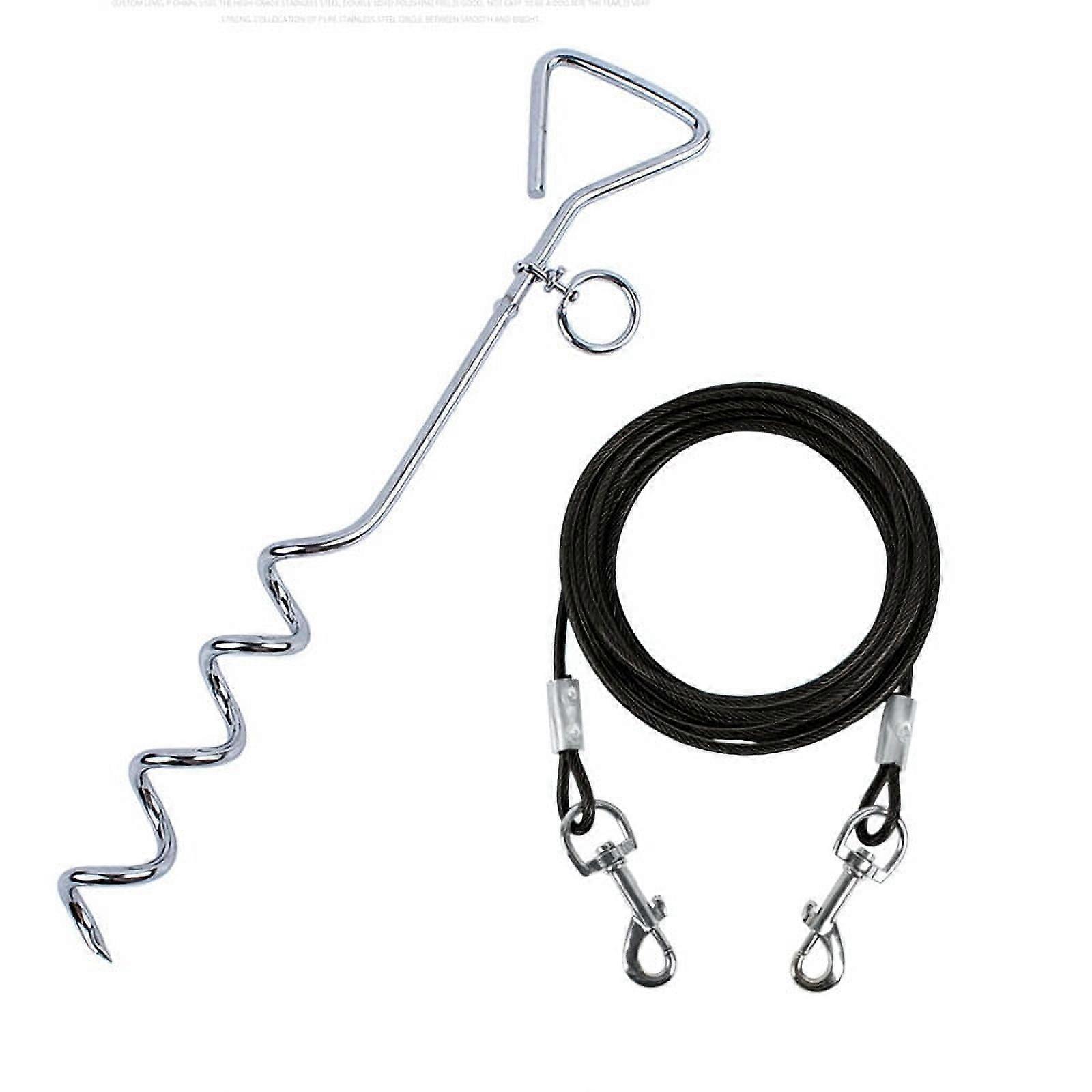 dog leash and wooden stake set, suitable for large dogs in yards, outdoor dog ground anchor, used for yard camping, parks, beaches (black)