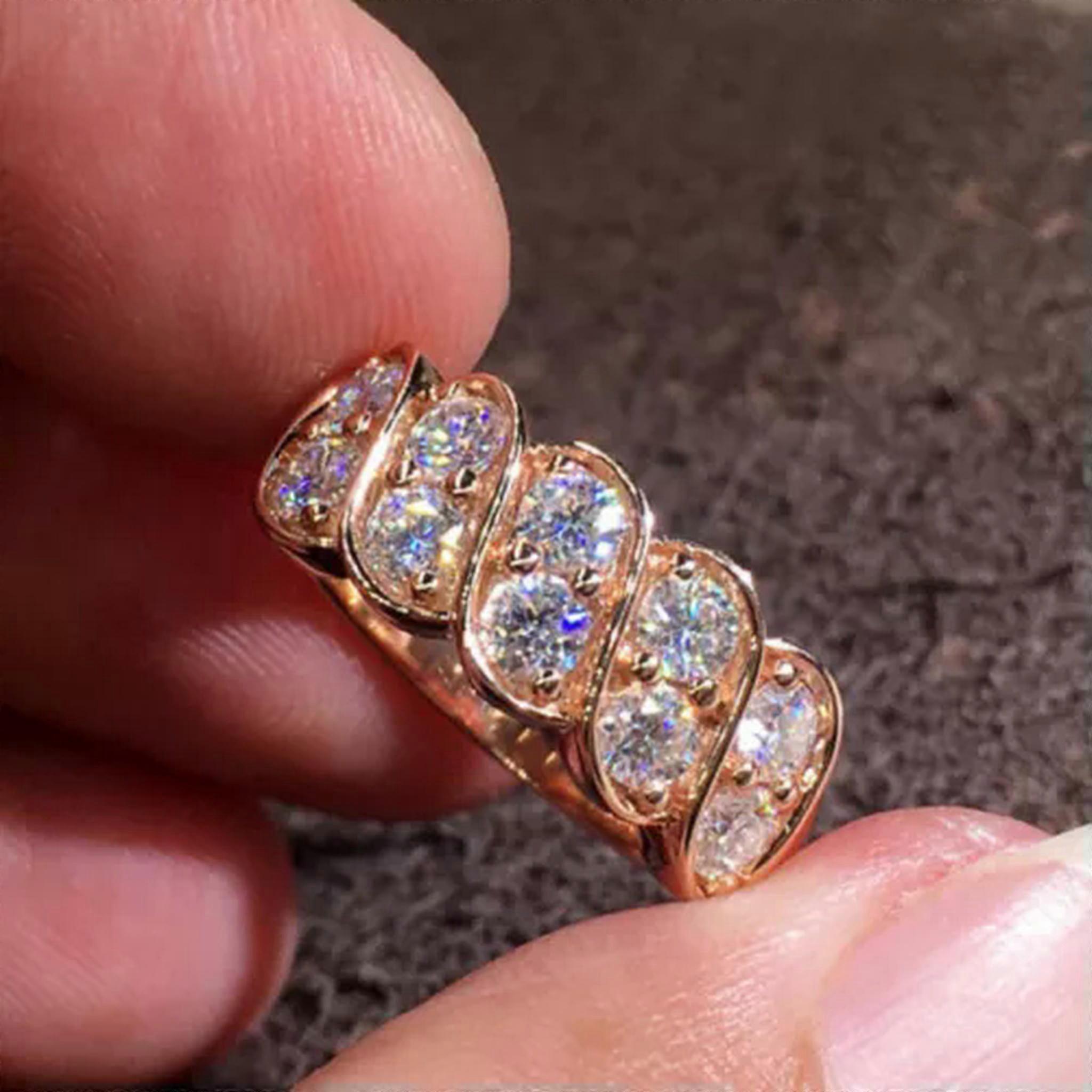 Gorgeous Wedding14k Rose Gold Plated Rings Cubic Zirconia Delicate Jewelry Size 6-10-7