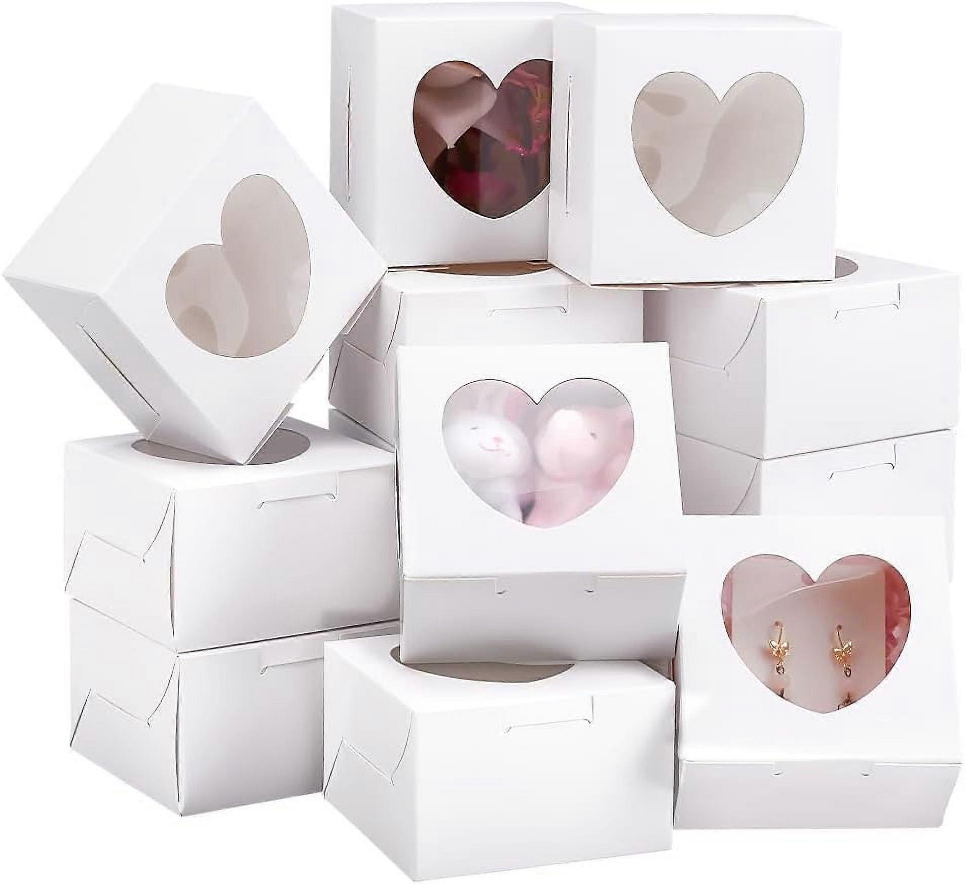 20pcs Square Kraft Paper Muffin Storage Gift boxes Heart Visible Winbow Gift Packaging Case for Cake Packaging WhiteSmoke 10x10x6.5cm