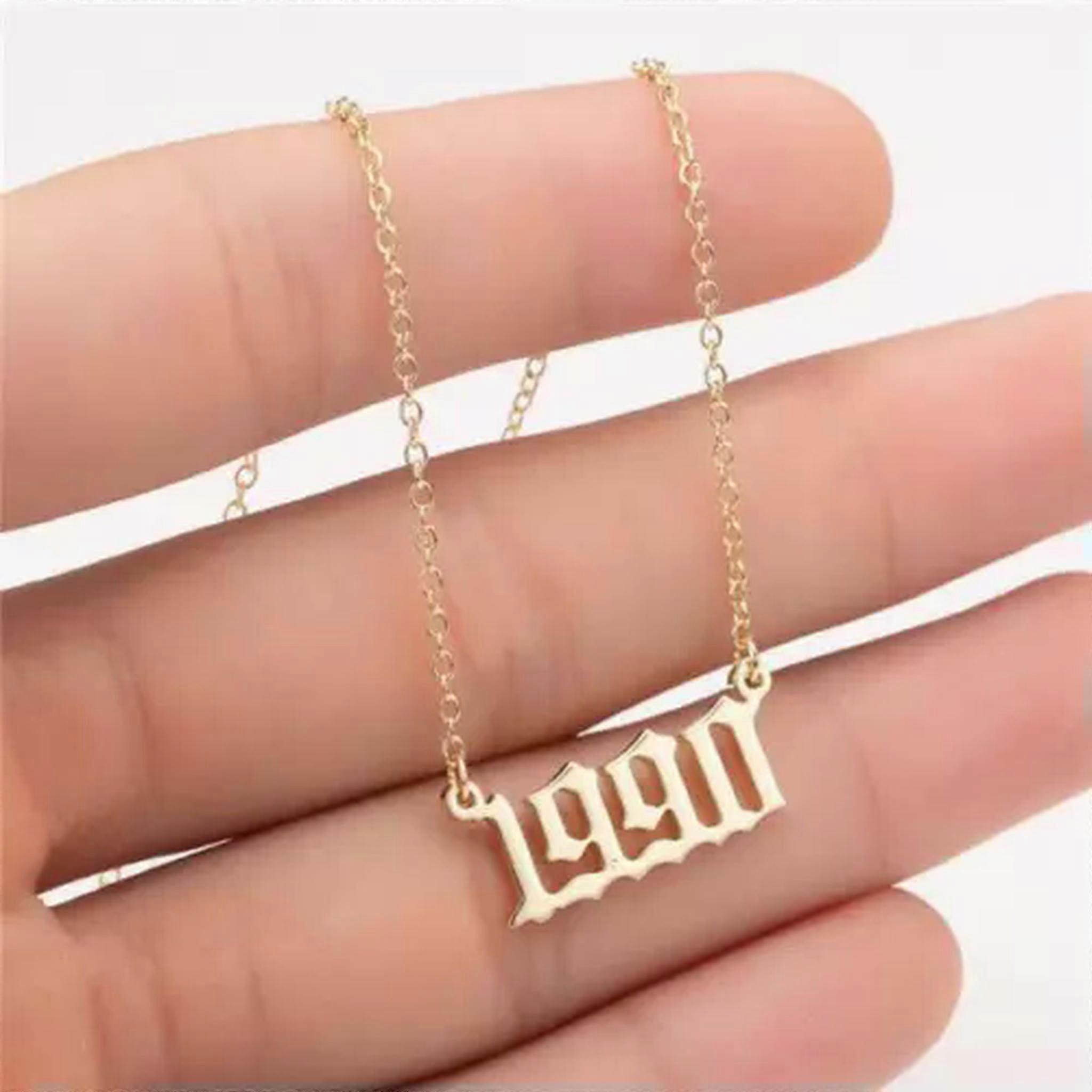 Birth Year Number Necklace Stainless Steel Pendant Women Men Lucky Jewellery-Gold 1990