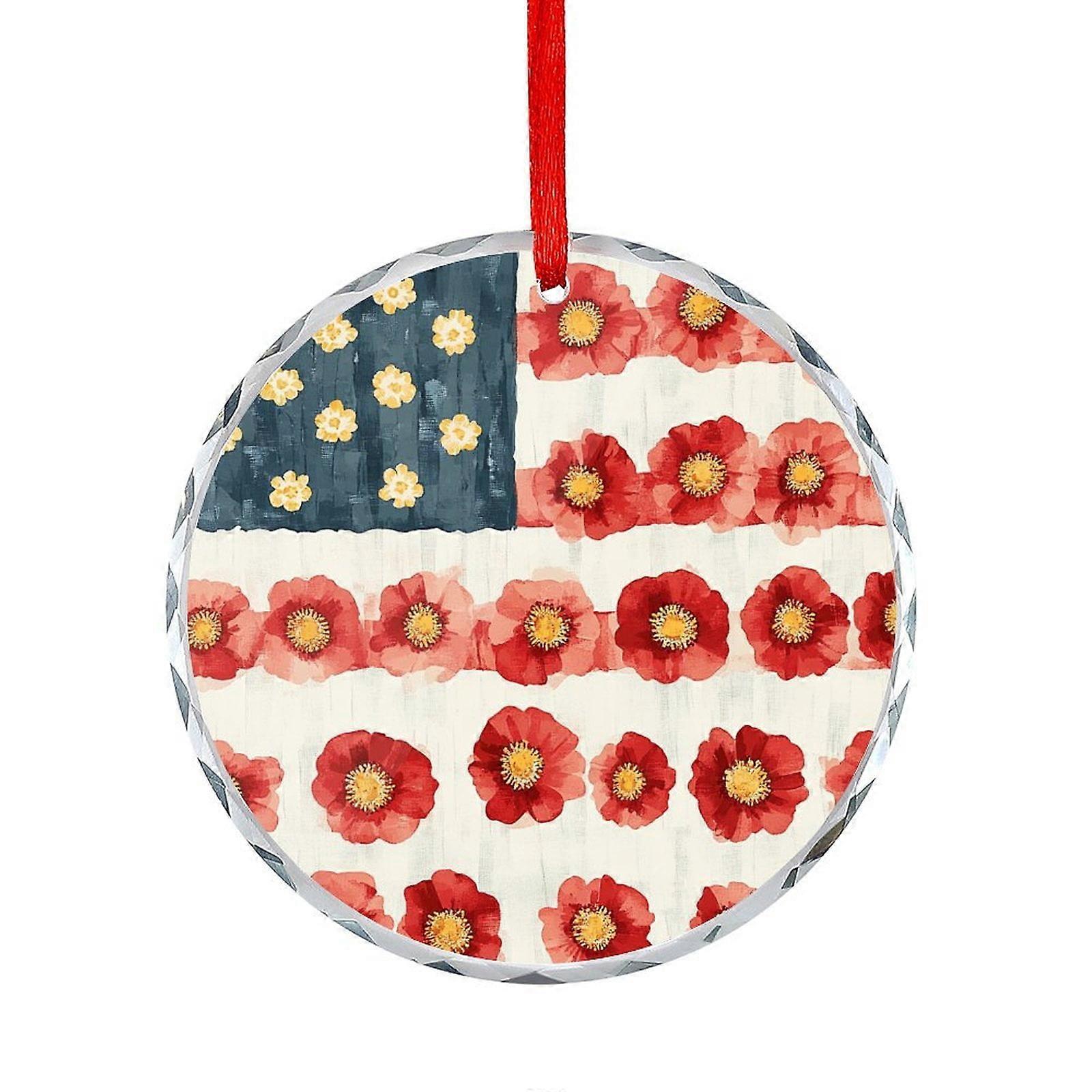 Poppy Memorial Day Patriotic American Flag Glass Christmas Ornament American Flag Glass Round Ornaments for Xmas Tree