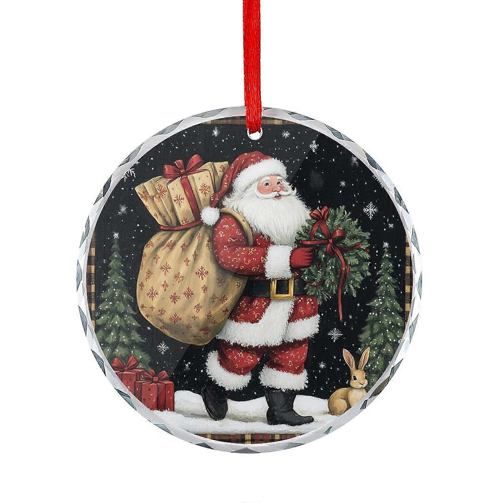 Glass Ornament Christmas Santa Claus Delivery Gifts Glass Round Christmas Ornament Winter Holiday Decor  Gifts for Women