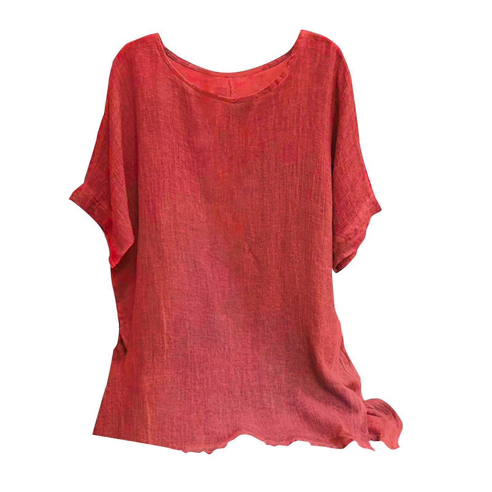 Women's Cotton Button-Down Tunic Top, Loose Linen & Gauze Jacquard Blouse – Red, Size 1 XL