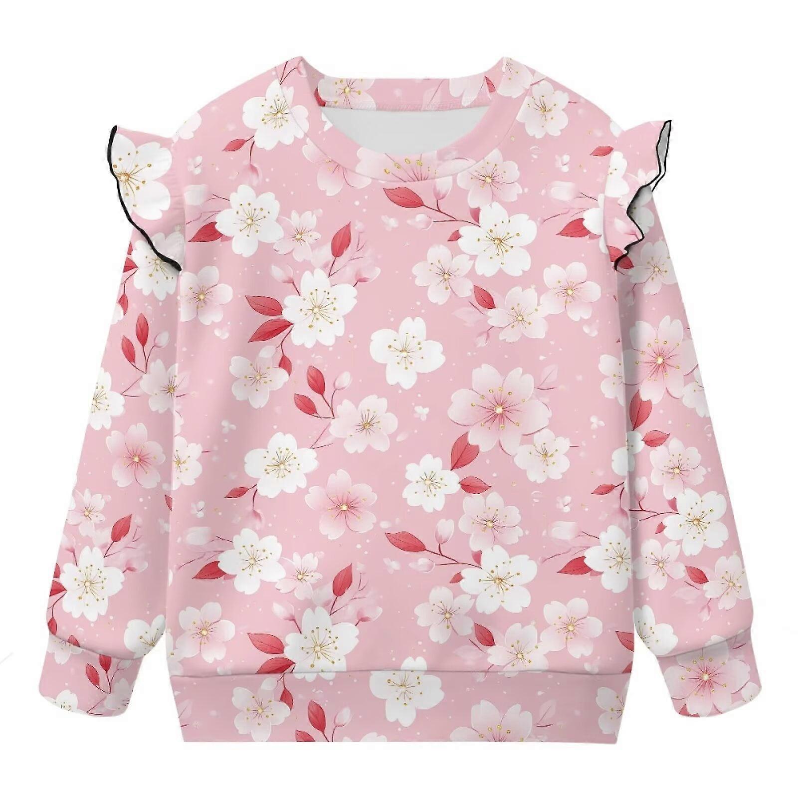 Girls' Size 4-5 Cherry Blossom Pink Ruffle Sweatshirt, Soft Lightweight Pullover Top, Crewneck Sweater – Compatible with Kids' Fashion