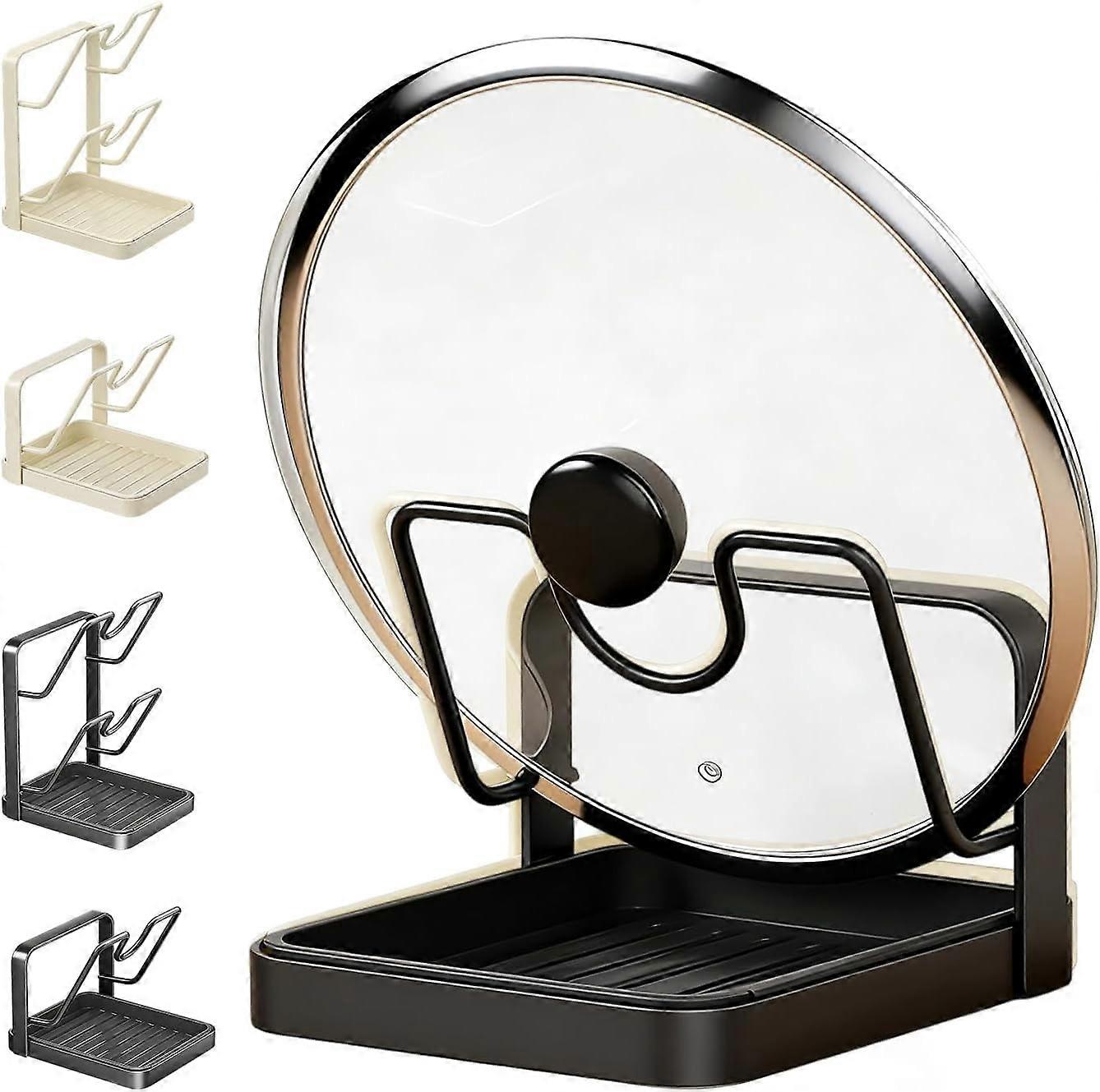 Leutsin Countertop Pot Lid Holder with Spoon Rest, Kitchen Lid Storage Rack for Stove Top (Gray, Single-layer) – Compatible with Standard Pots