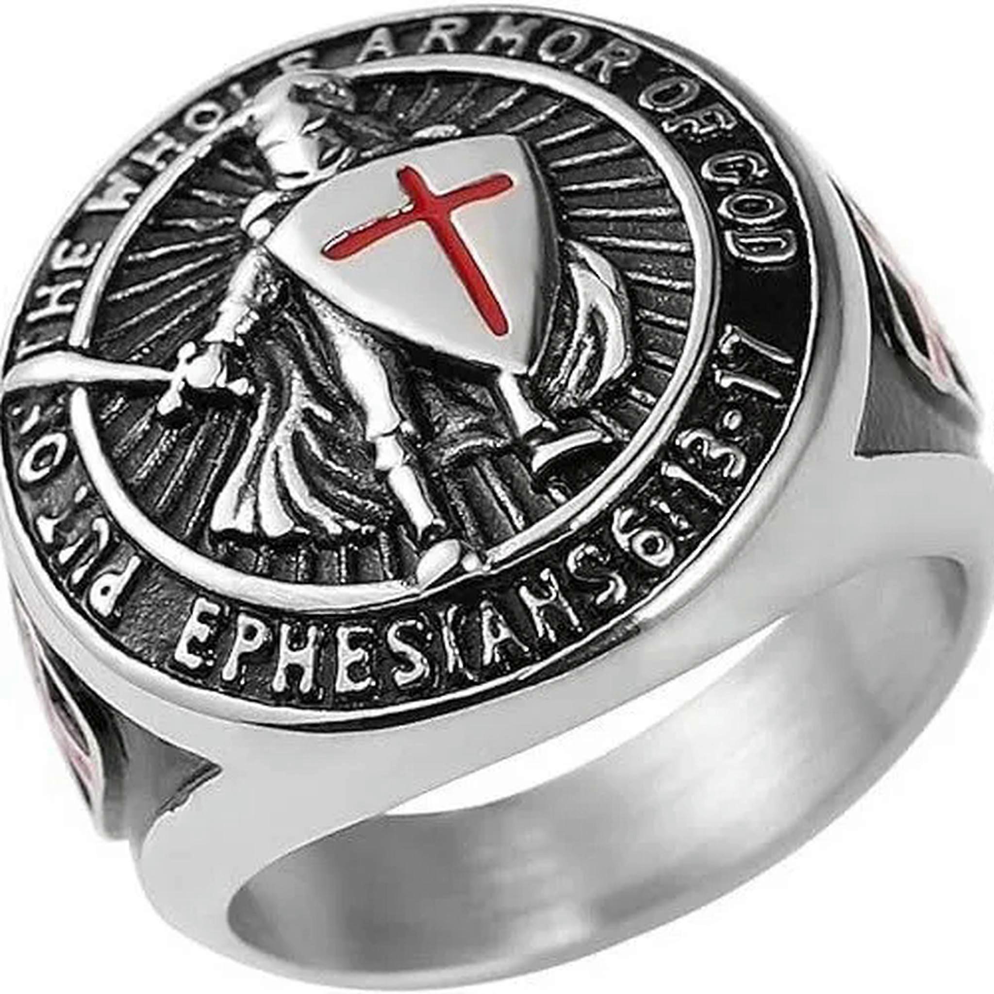 Sword Shield Warrior Ring Stainless Steel Put on the Whole Armor of God Ring-10