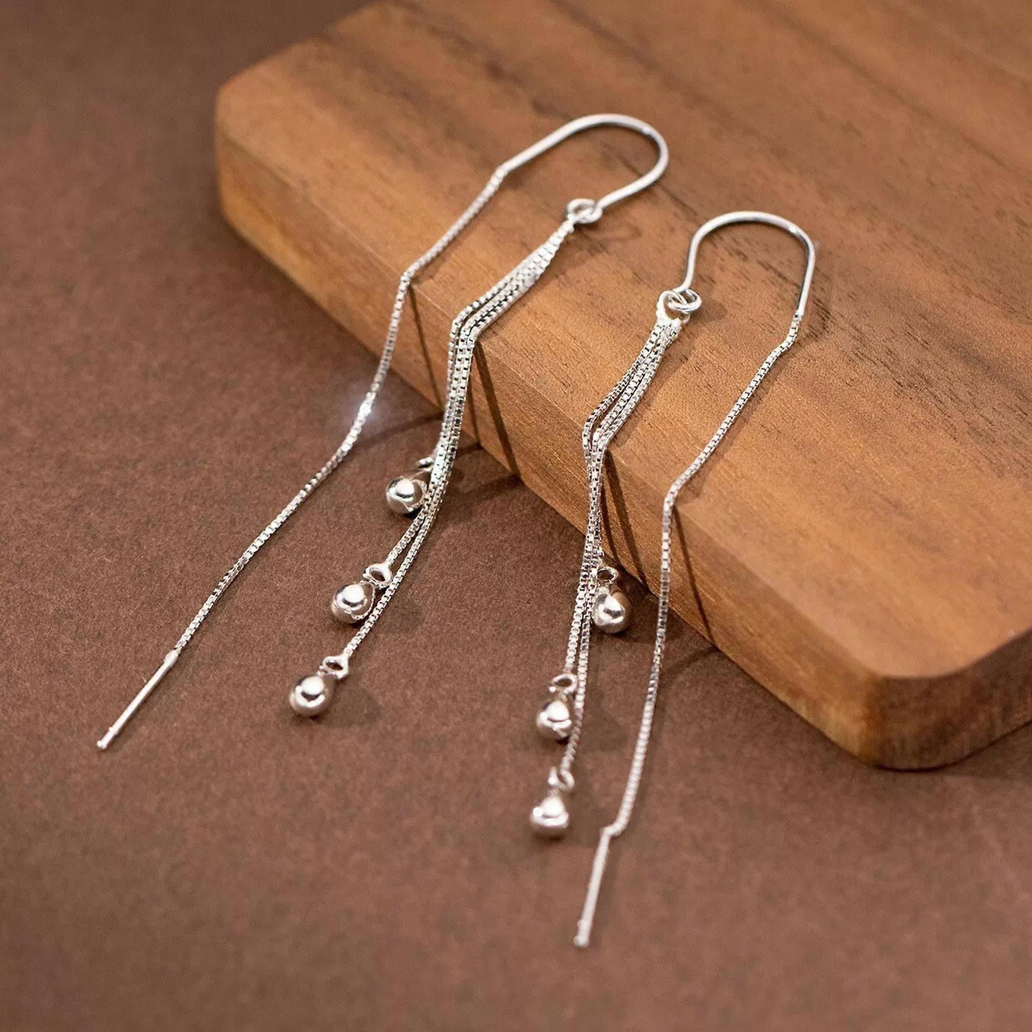 925 Sterling Silver Pear Drop Tassel Threader Dangle Drop Earrings Long Chain