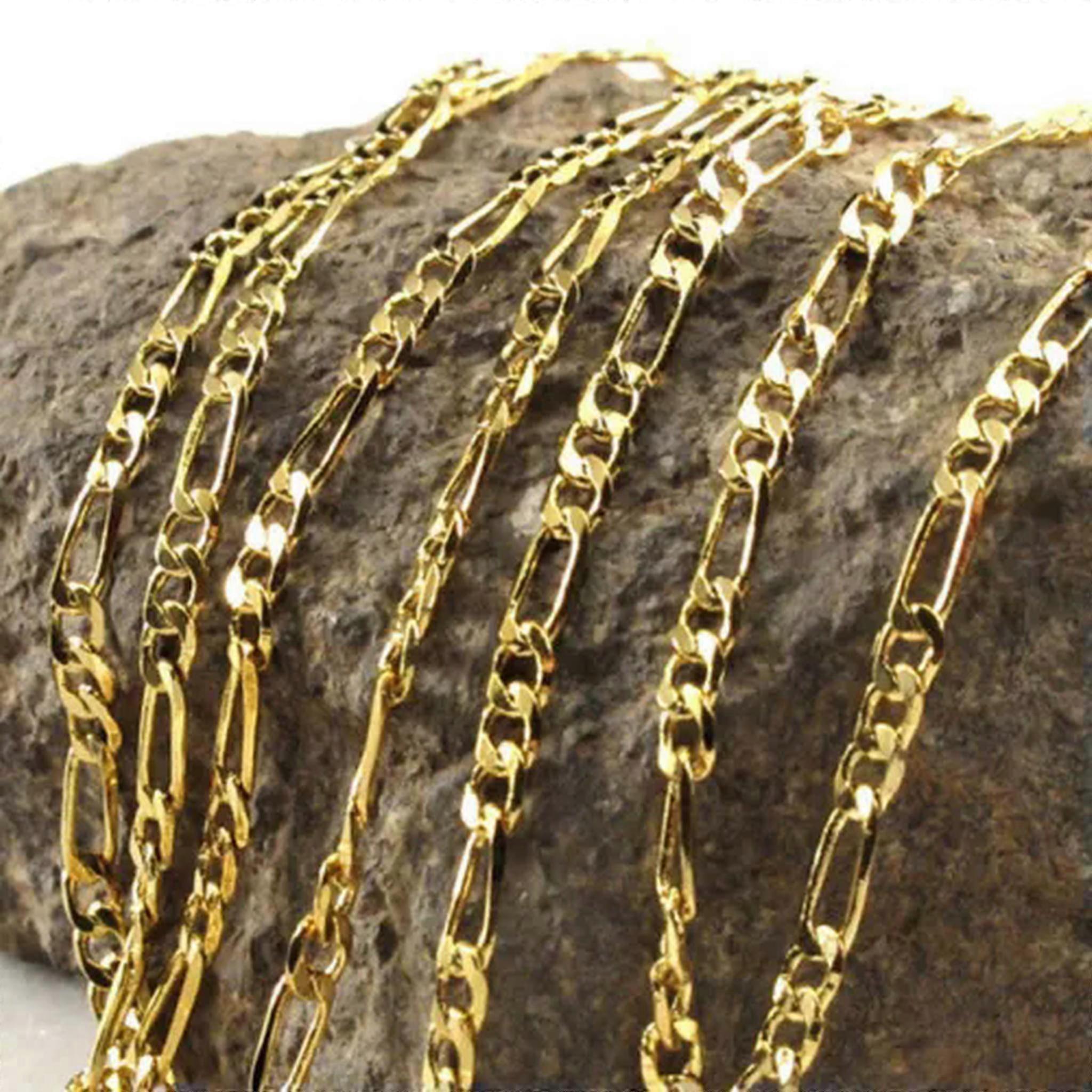 Bulk 20Pcs Gold Plated Figaro Chain Necklace 16-30inch Delicate Jewelry for Men Women-24"-20pcs