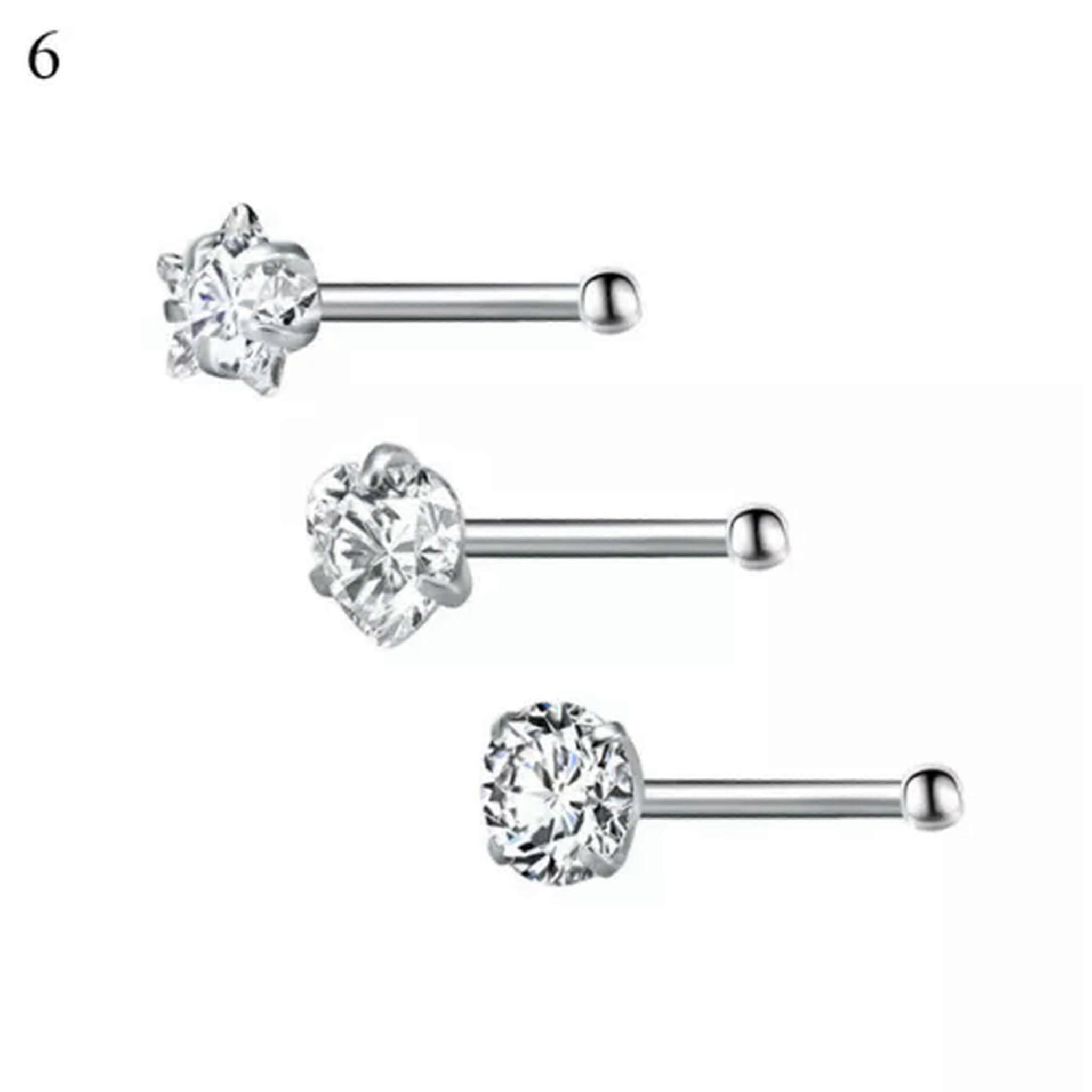 Punk Zircon Nose Stud Surgical Steel Nose Ring Lip Rings Body Piercing Jewelry~-6