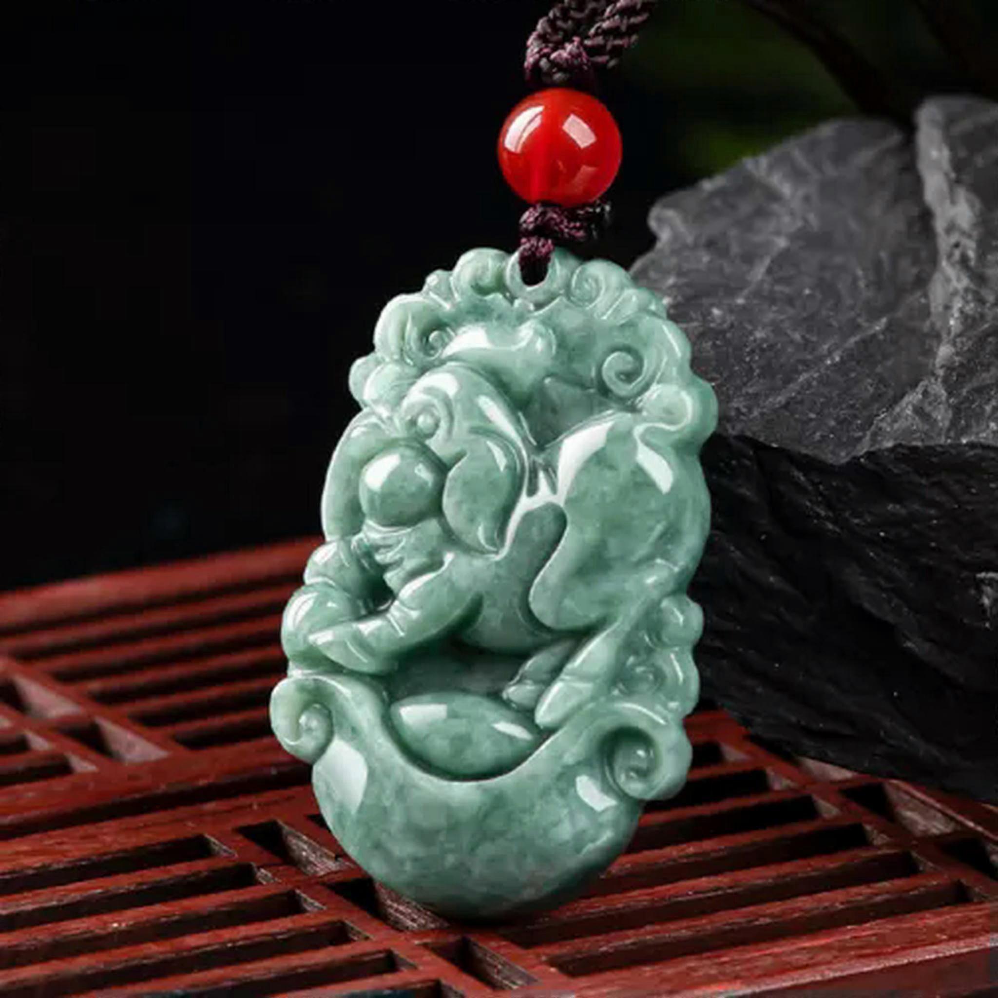 1pcs Natural Jade Pendant A Grade Twelve of Zodiac Bean Green Jadeite Pendant-Pig