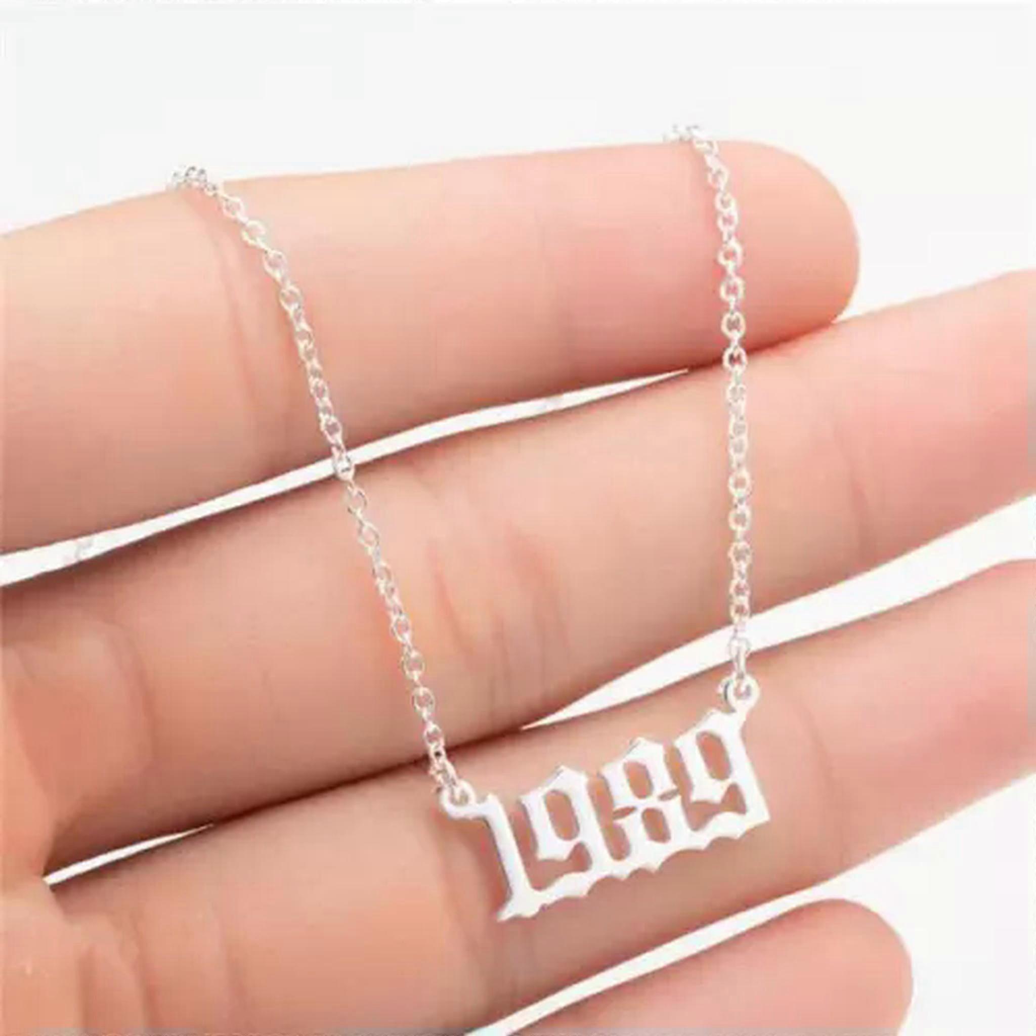 Birth Year Number Necklace Stainless Steel Pendant Women Men Lucky Jewellery-Silver 1989