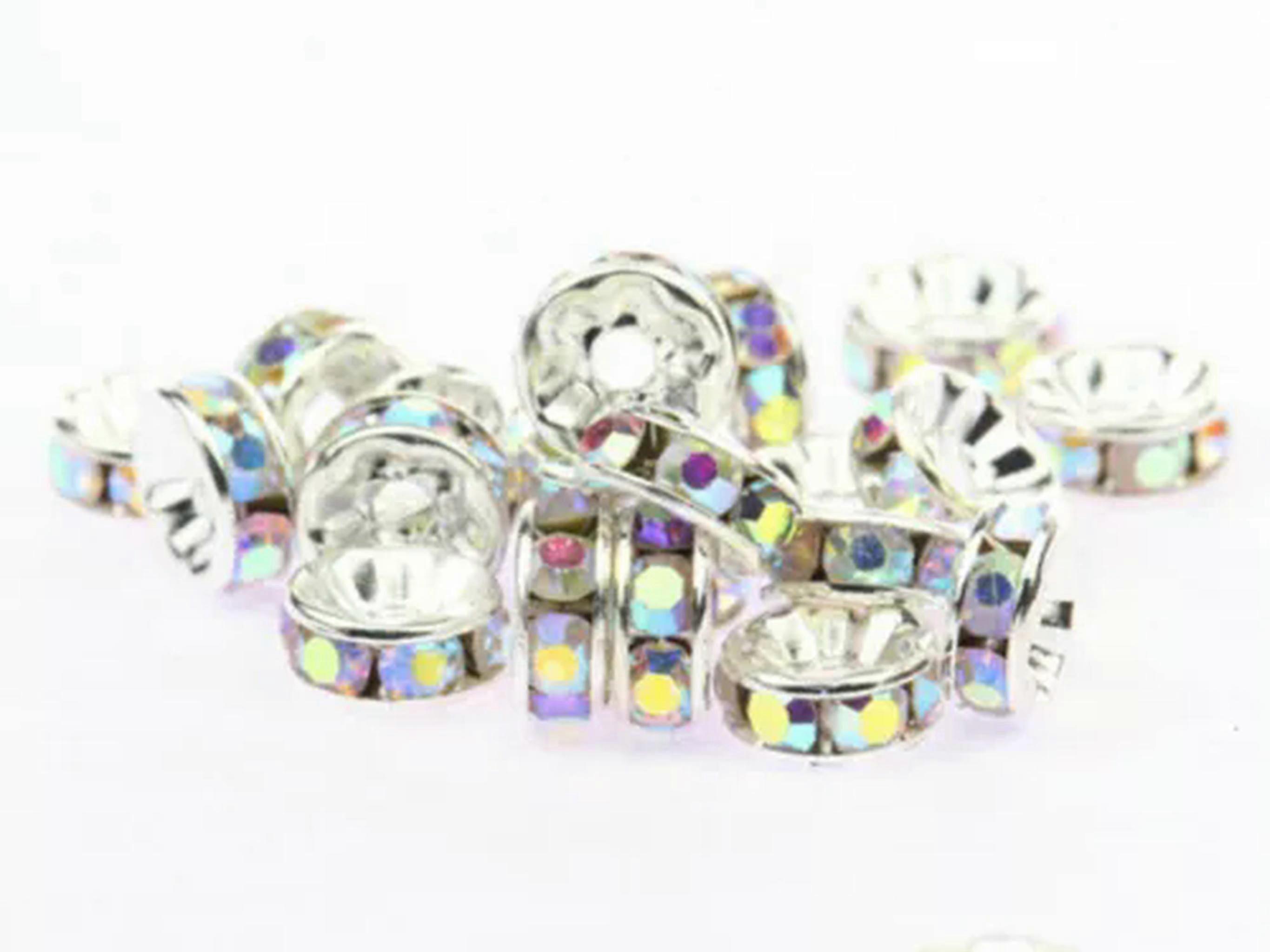 100 Silver Crystal Rhinestone Rondelle Spacers Beads 6mm 8mm 10mm Colour Choice-6mm-Clear AB