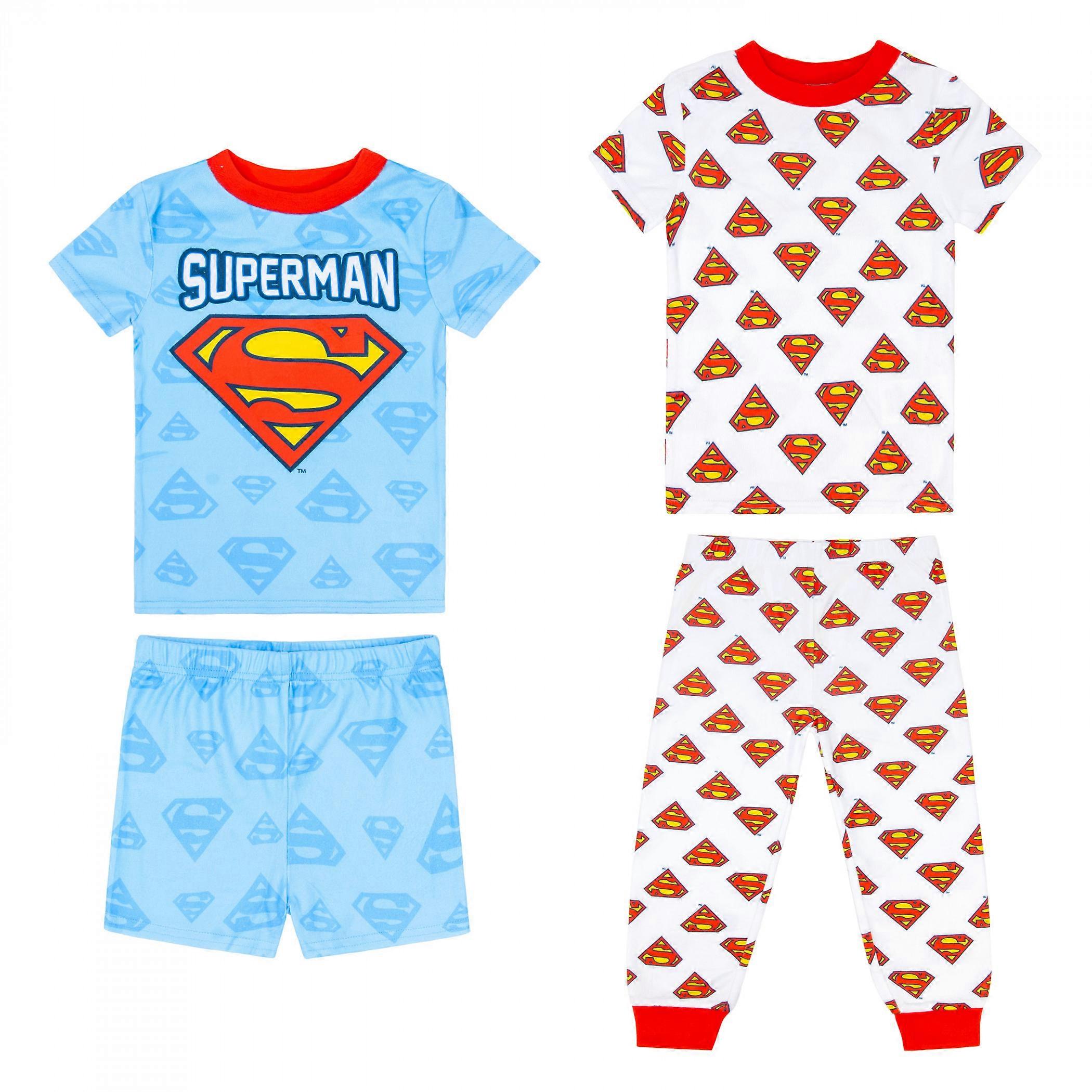 Superman Boy's Short and Long Sleeve 4-Piece Pajama Set