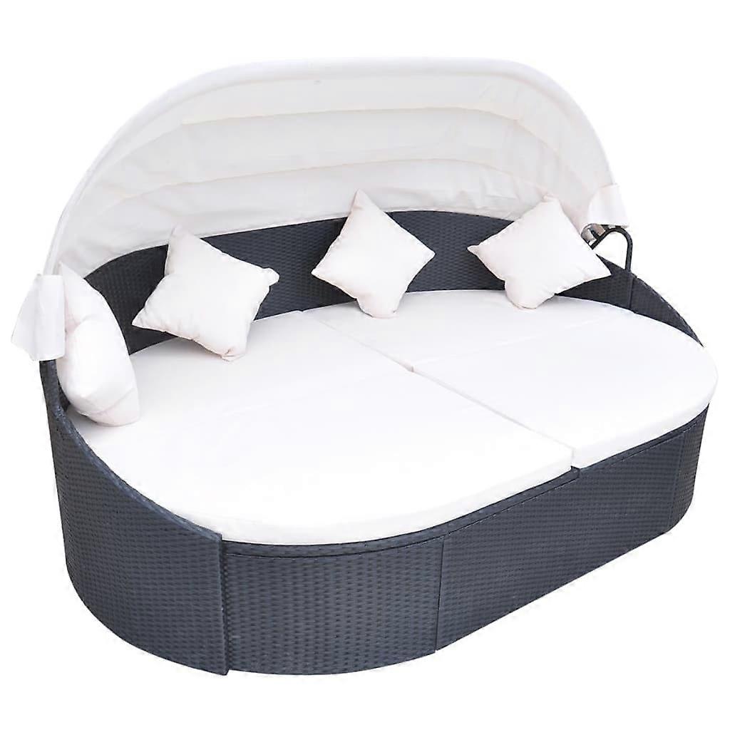 Vidaxl Outdoor Lounge Bed With Canopy Poly Rattan Black Loungers