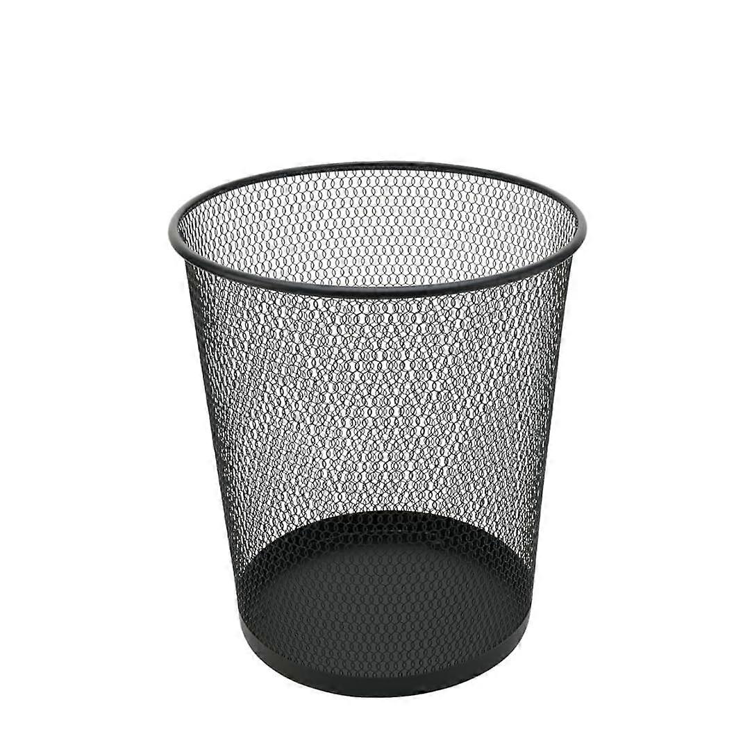 Black Metal Mesh Wastebasket 6 Gallon Round Steel Trash Can for Home and Office