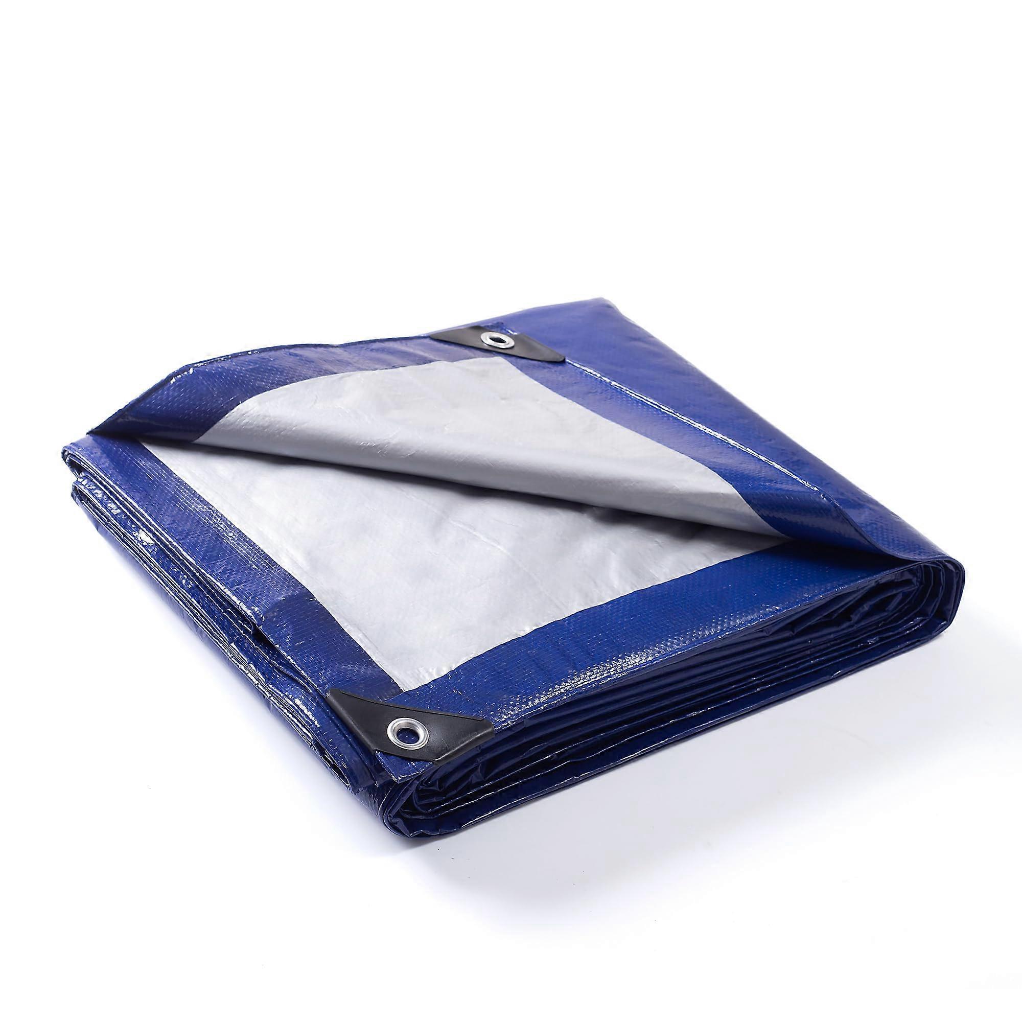 Blue Silver Waterproof Camping Tarp 12 x 20 Feet, 8 mil Polyethylene Keep gear dry and protected with a versatile, heavyduty tarp designed for outdoor use. This 12 x 20 feet blue silver tarp combines a strong woven core and laminated outer layer to resist water, UV, wind, and tearing while remaining lightweight and easy to carry. Key benefits Reliable weather protection: 8 mil polyethylene construction with LDPE laminated outside stops rain and moisture, while UV protection reduces sun damage to the tarp and items underneath. Built to resist wear: Inner HDPE woven fabric adds tear and rip resistance for repetitive outdoor use and rough surfaces. Secure anchoring: Rustproof aluminum grommets placed every 18 inches and a PP rope reinforced hem allow stable fastening and even load distribution. Reinforced stress points: Plastic reinforced corners add durability where stakes, ropes, or tension are applied. Portable and easy to use: Folds compactly for storage and transport, suitable for camping kits, trucks, and emergency gear. Material and performance details Material: Polyethylene with inner HDPE woven fabric and LDPE laminated exterior for waterproofing and durability. Thickness: 8 mil for a balance of toughness and flexibility. Size: 12 x 20 feet, large enough to cover tents, equipment, or create shelter. Color: Blue on one side, silver on the other for reflective properties and versatile appearance. Accessories and reinforcement: Rustproof aluminum grommets every 18 inches, plastic reinforced corners, and PP rope reinforced hem for longlasting performance. Practical uses and scenarios Groundsheet under a tent: Place the tarp under a tent to block ground moisture, extend tent life, and help keep sleeping areas dry. Emergency shelter or sunshade: Tie to trees, poles, or vehicle roof racks using the grommets to make a quick shelter for weather protection or shade. Equipment and cargo cover: Protect firewood, tools, garden equipment, motorcycles, or truck beds from rain and sun when parked or stored outdoors. How to use Lay flat and position with the silver side up for extra reflectivity or blue side up for a lower profile. Secure with ropes or bungees through the grommets every 18 inches, and reinforce corners using the plasticreinforced pockets. Fold or roll dry before compact storage to extend life and reduce odor. What makes this tarp stand out Combination of HDPE woven inner fabric and LDPE laminated outside for waterproofing and tear resistance. Consistent reinforcement across edges and corners for dependable, repeatable anchoring. Size and thickness suited to a wide range of outdoor tasks without unnecessary weight. Specifications Color: Blue Silver Size: 12 x 20 feet Thickness: 8 mil Material: Polyethylene (inner HDPE woven fabric, LDPE laminated outside) Features: Waterproof, UV protection, tear and rip resistant, windproof and rainproof, portable and durable Reinforcements: Rustproof aluminum grommets every 18 inches, plastic reinforced corners, PP rope reinforced hem This tarp is a practical, durable solution for outdoor protection, ground covering, and quick shelter needs.