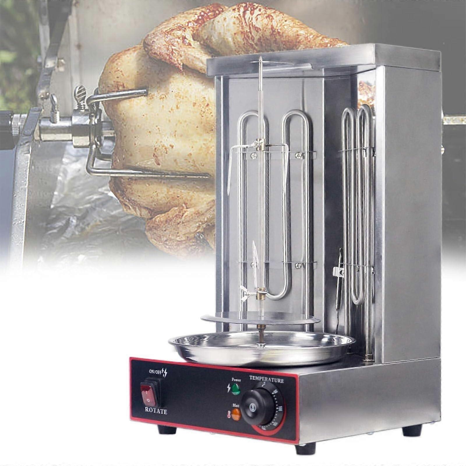 Rotisserie Grill with Dual Heating Tubes, 110V Vertical Design for Chicken, Kebab and Doner