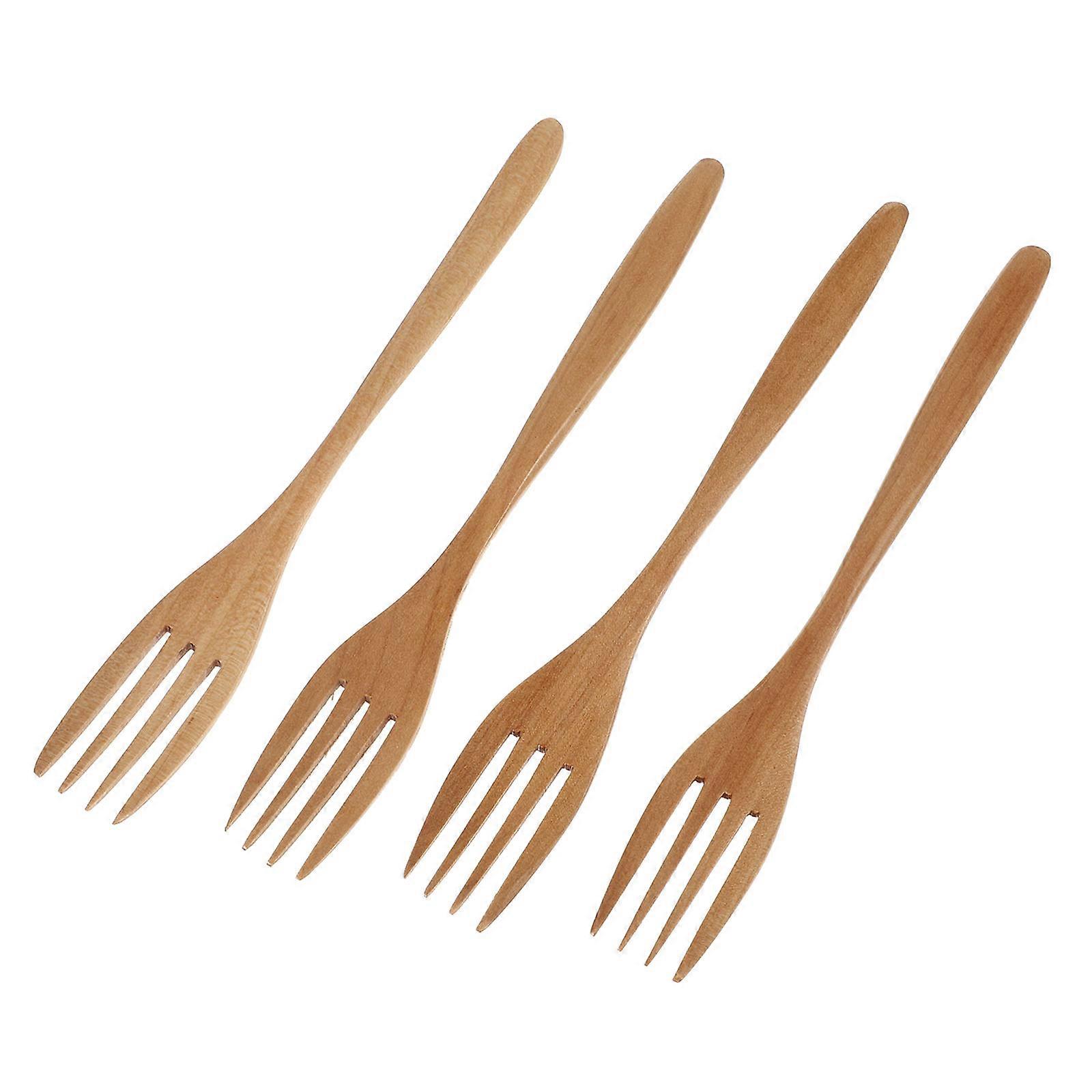 8 Pcs Wooden Kitchenware Salad Stirring Forks Lightweight Cooking Utensils For Professional Cooks In Simple Design