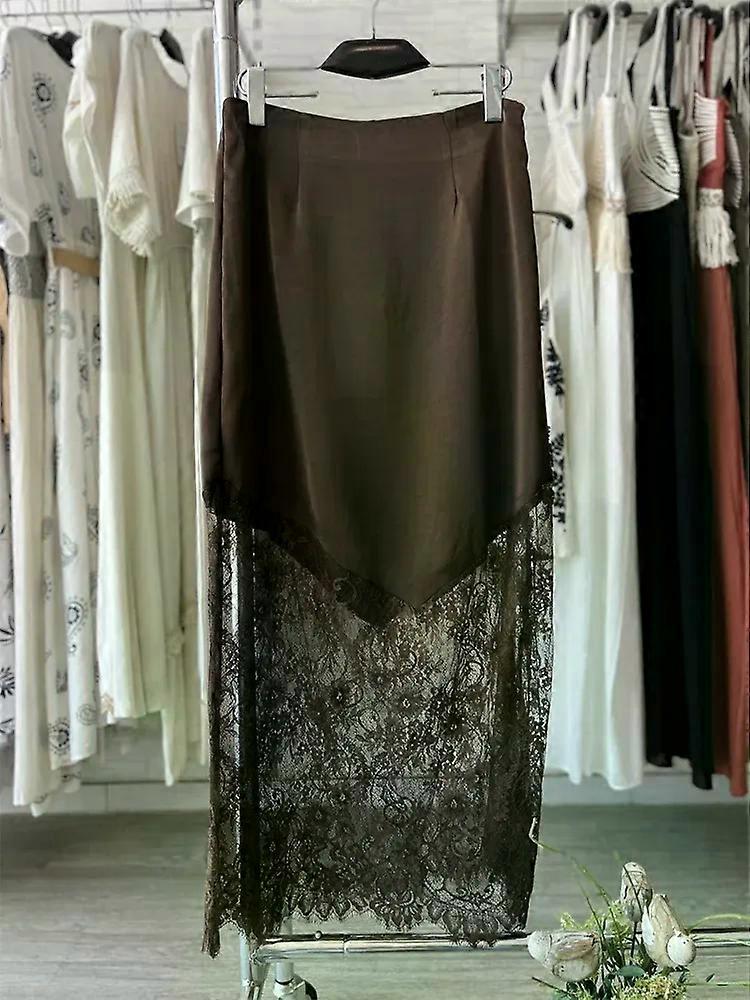 Trendix Women Patchwork Lace Skirts 2025 New High Waist Slim Hollow Out Maxi Skirts Autumn Brown Fashion Party Club Boho Skirt