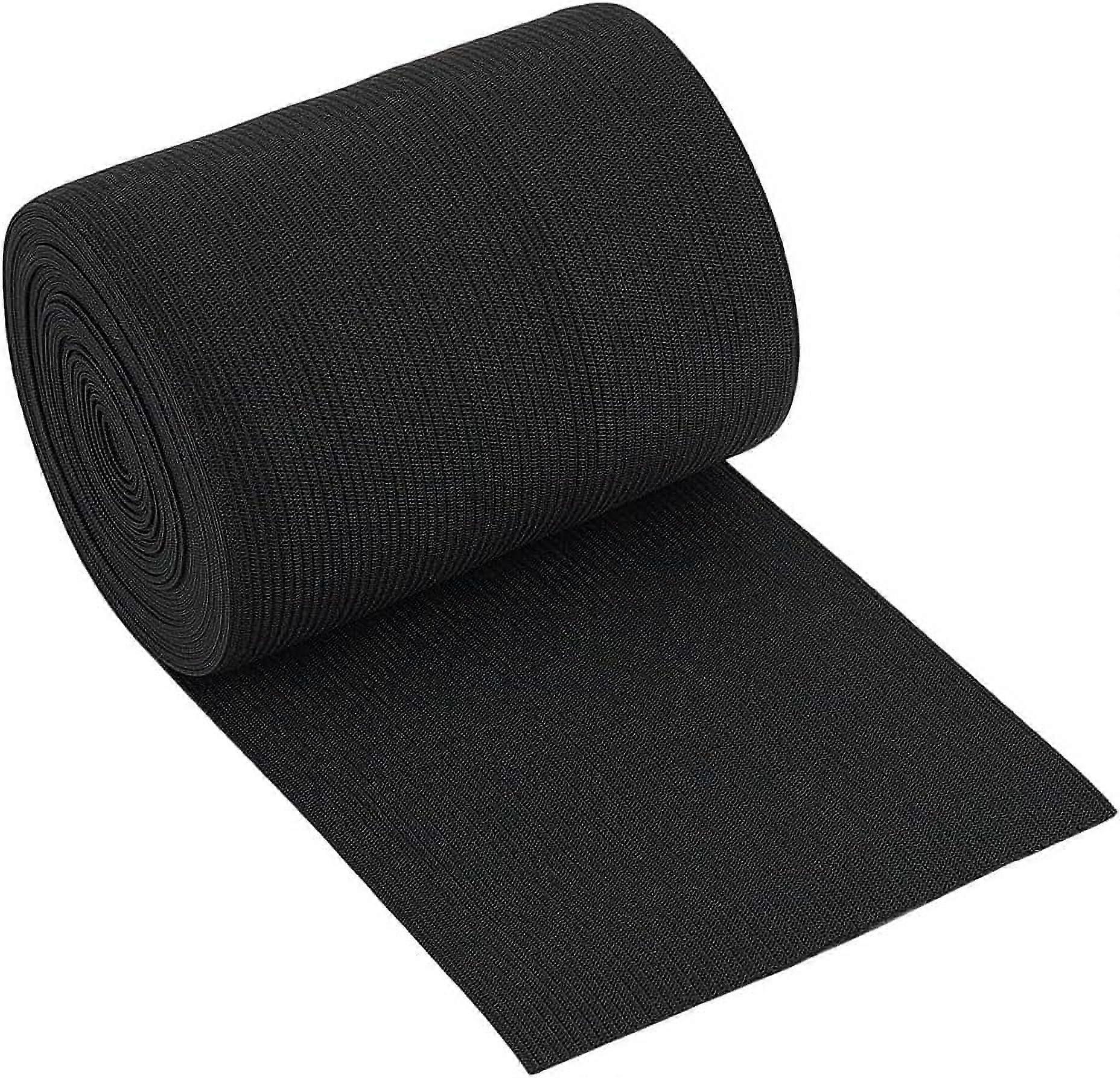 【Size Reference】: Black in color, measures 4" (100mm) in width, 5.5yards in length, 0.8mm thick, enough for daily craft sewing project 【Size Reference】: Black in color, measures 4" (100mm) in width, 5.5yards in length, 0.8mm thick, enough for daily craft sewing project 【Material】: Made from 40% Polyester and 60% Rubber, shortened into the length you want, each roll has a pin to fix the elastic band, convenient to apply 【Good Elasticity】: The elastic band can easily restore the original length without deformation in the range of allowable tensile 【Soft to Use】: The elastic band is made with good craftsmanship, soft in the surface, tightly weaving makes it not easy to get loose 【Wide Usage】: Can be used for edges of Waist Bands, Shorts, Skirt, Maternity wear, clothes making or changing size of clothes; Also great for DIY projects making and so on