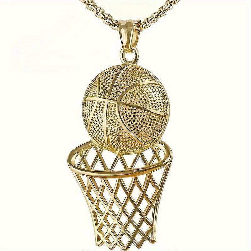 Fashion Basketball Hoop Pendant, Golden Hip Hop Necklace for Daily Wear & Sports – Compatible with All Chains