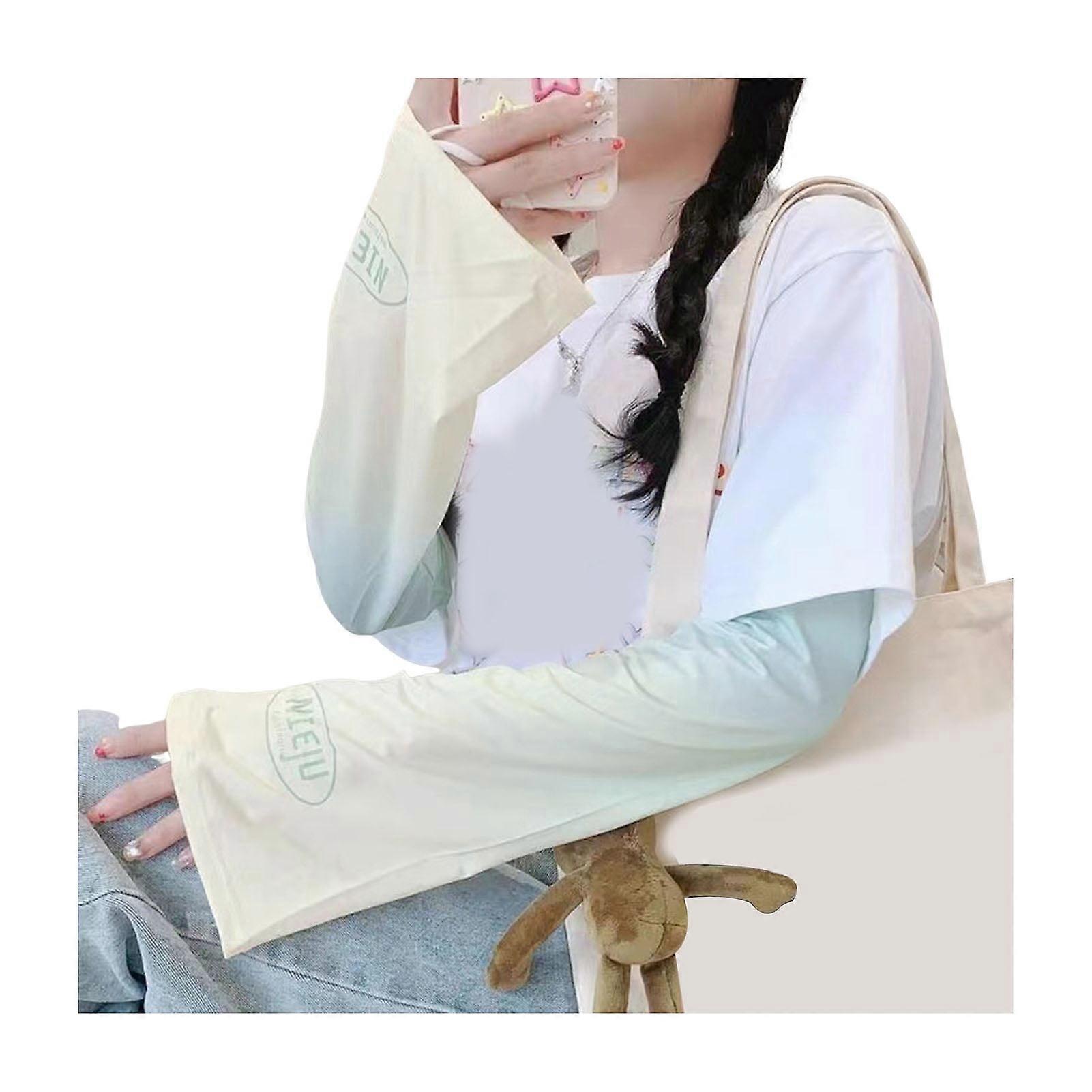 Xinwanna UV Sun Protection Arm Sleeves for Women Cooling Ice Silk Arm Sleeves Sunscreen Arm Cover for Outdoor Cycling Running (Yellow Green,One Size)