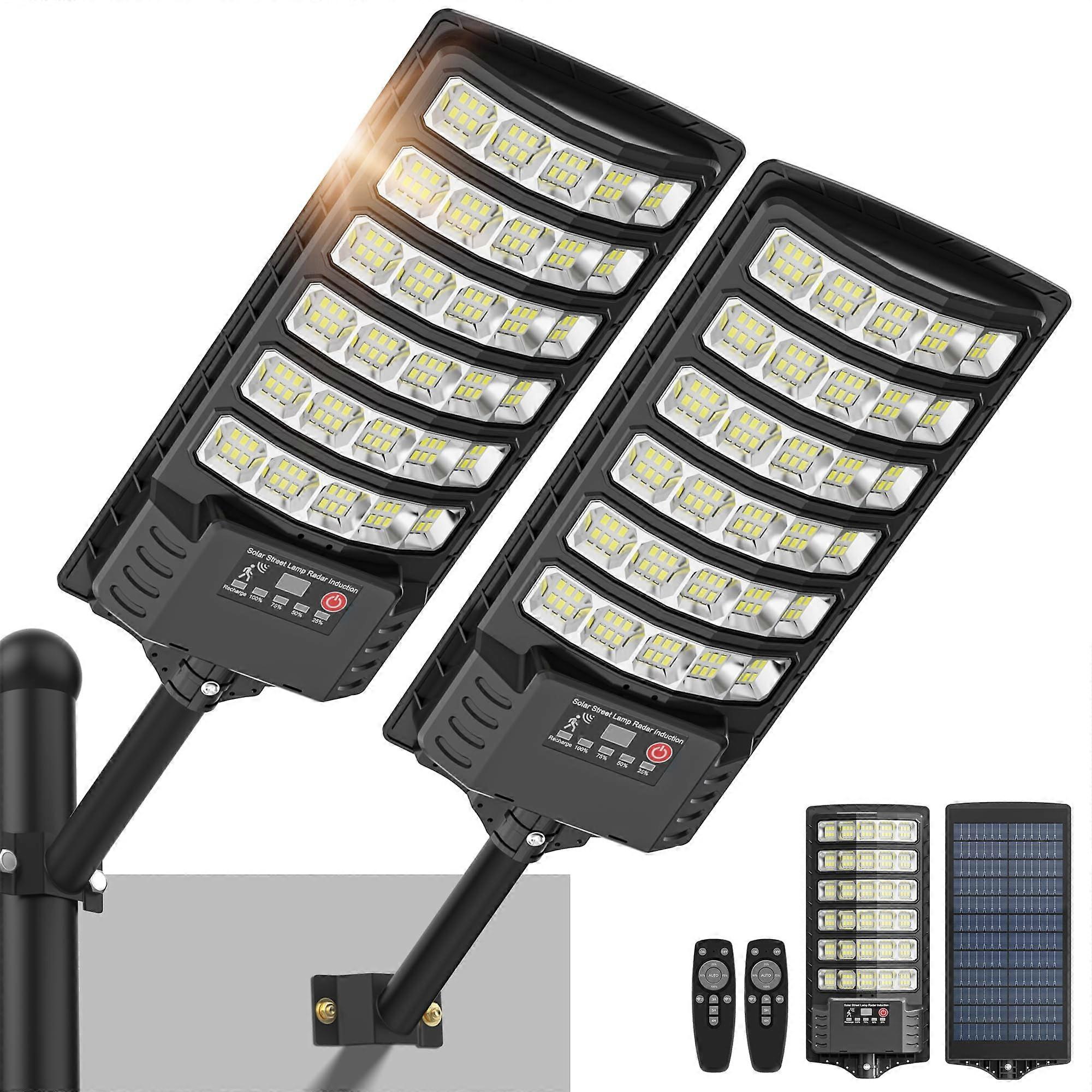 30000LM Solar Street Lights Outdoor Waterproof, with Motion Sensor and Remote, Dusk to Dawn Security Floodlight, 2pack