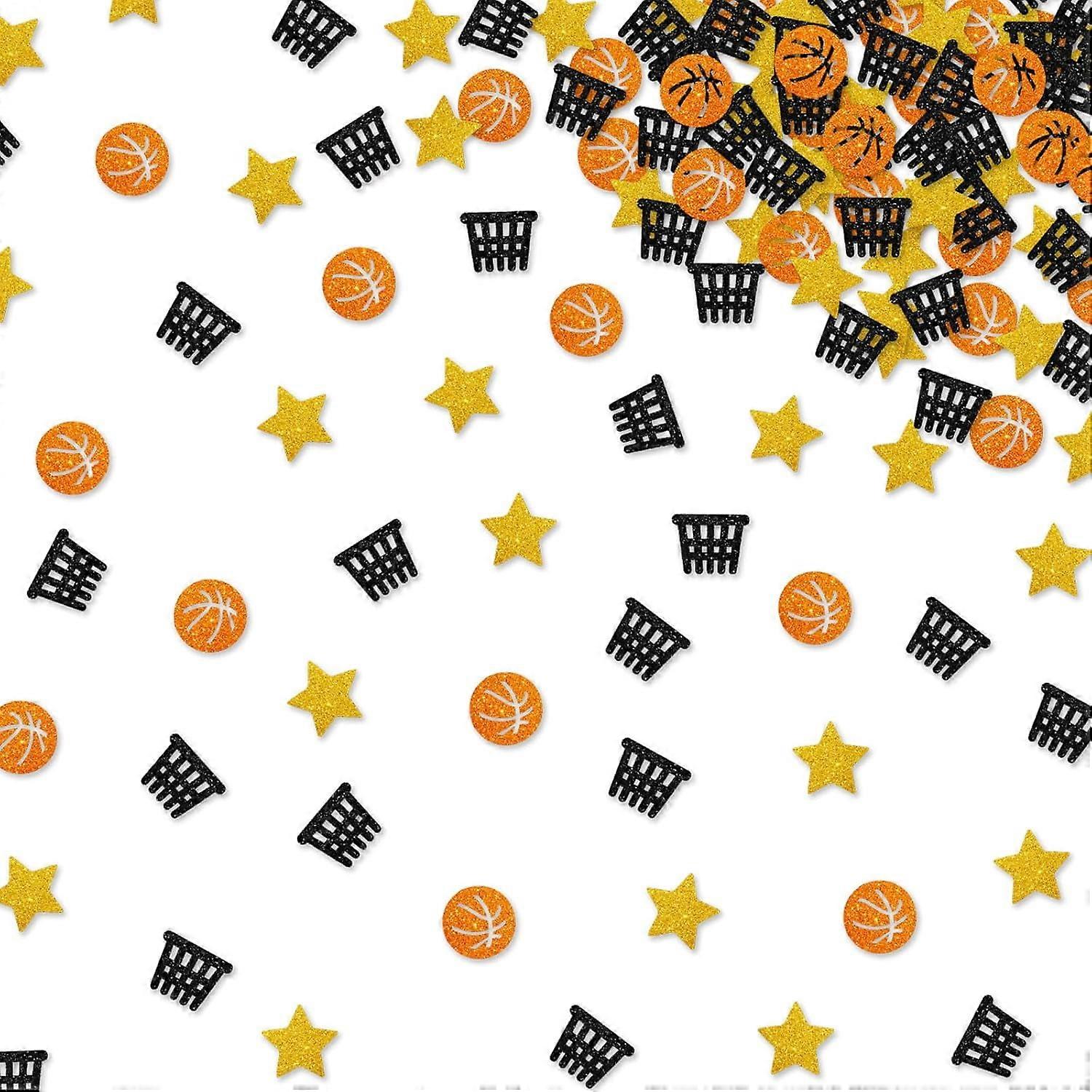 120pcs Basketball Confetti – Black & Orange Glitter, Net/Table Scatter for Kids’ Birthday & Sport Party Decor