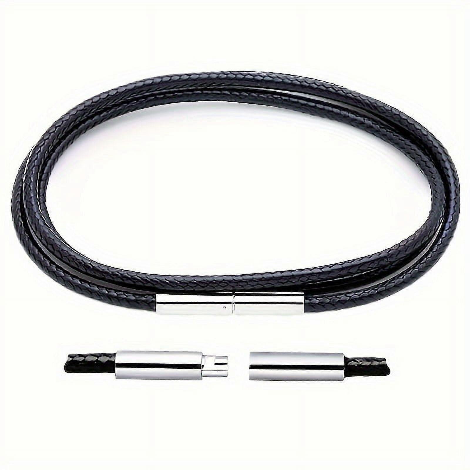 1mm-3mm Wax Cord Choker Necklace, Stainless Steel Clasp Thin 16"-32"Mens Necklace,22 Inches-2mm Wide-Black