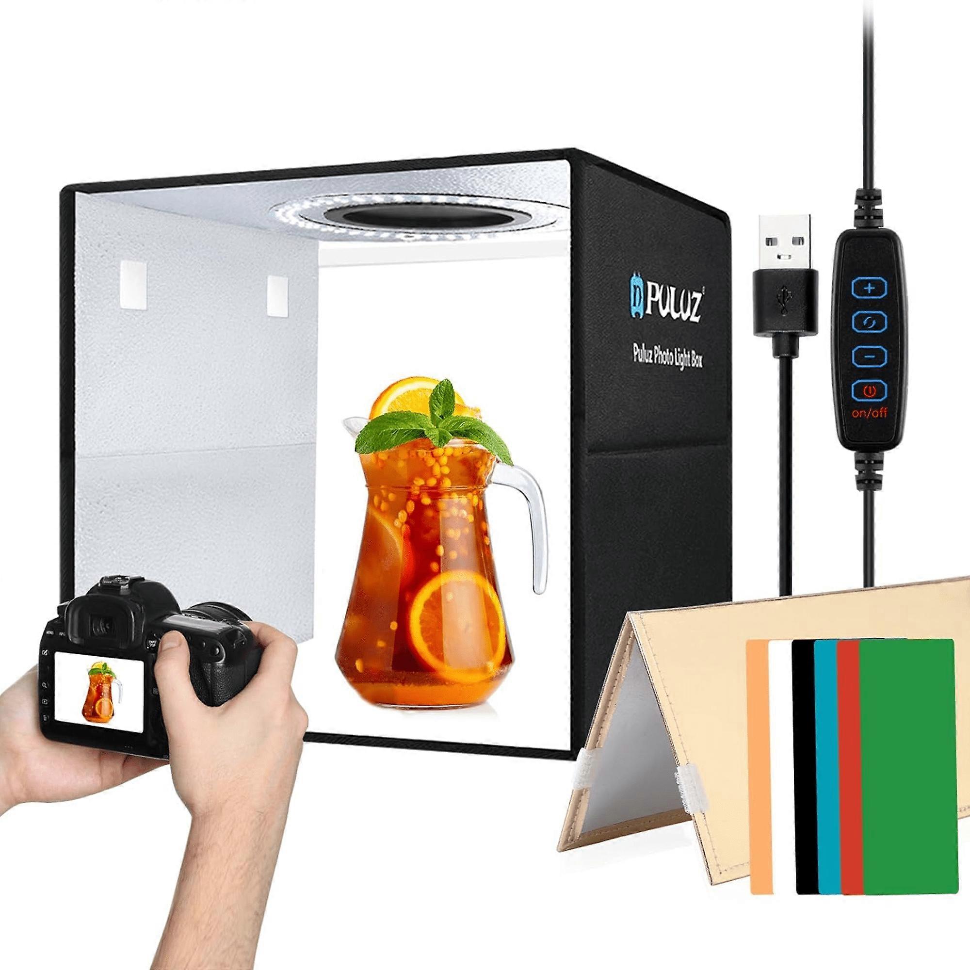 PULUZ Foldable Photo Studio Light Box 12"x12"x12" with Dimmable LED Ring Light & 6 Backdrops, CRI97 — Compatible with Jewelry & Product Photography
