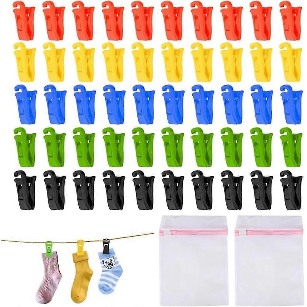 50pcs Colourful Sock Clips for Washing Machine and Dryer, Sock Holder with Hooks, Sock Holder Washing Machine, Sock Clips Supi with 2 Laundry Nets