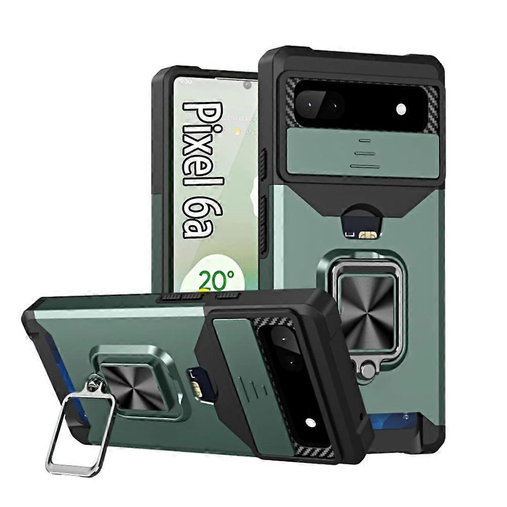 Daxi for Google Pixel 6a Phone Case with Card Holder, Ring Holder, Rugged Protective Shell -Darkgreen